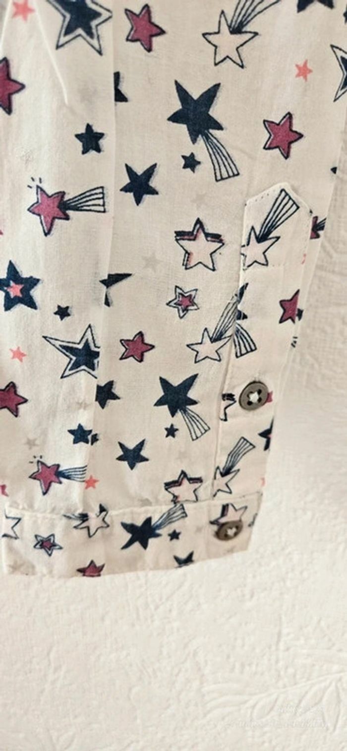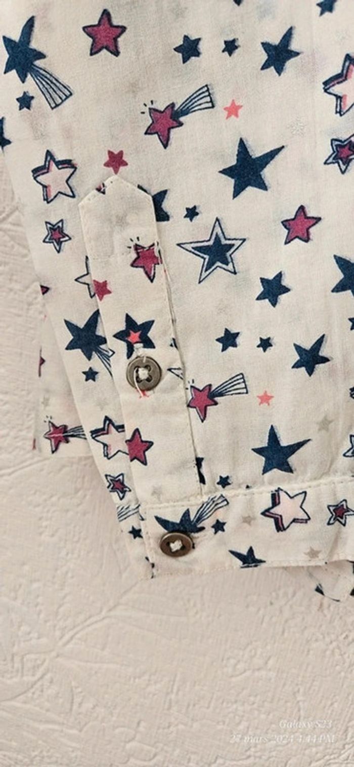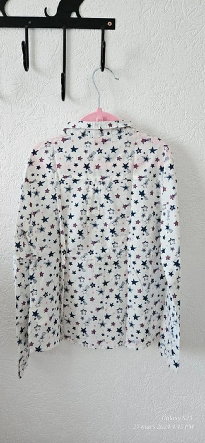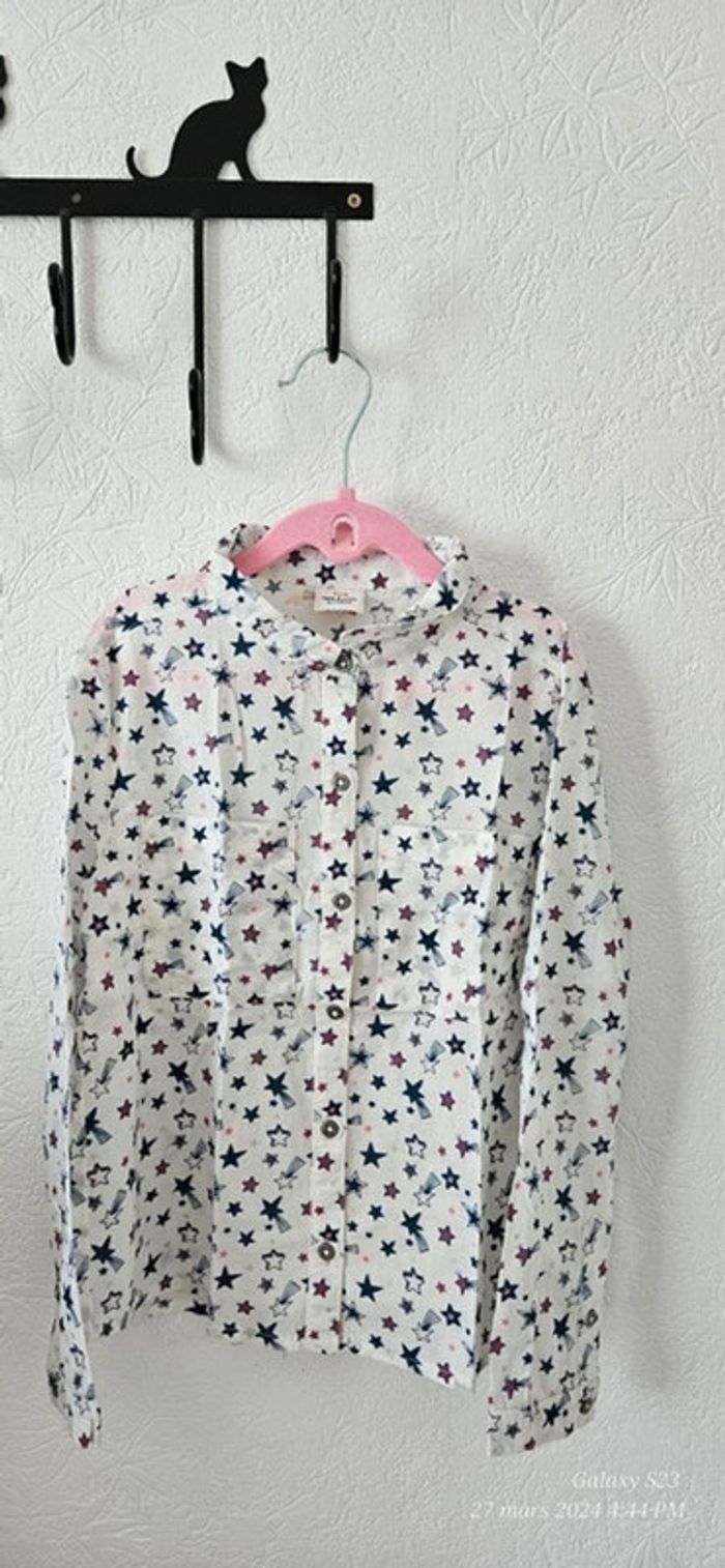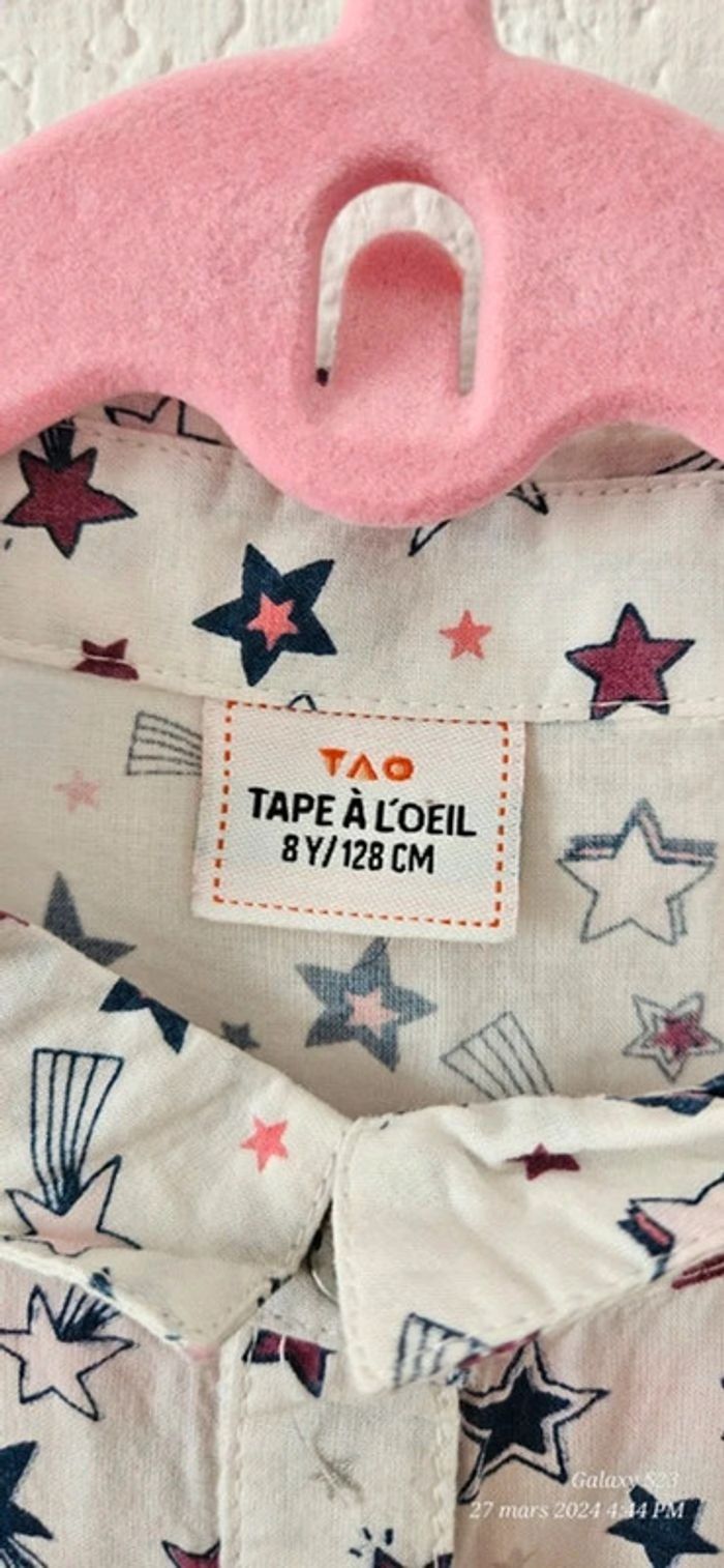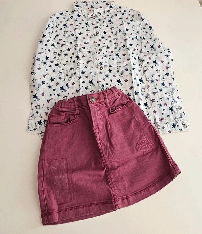 Ensemble tape à l'œil, comme neuf. 🔸️Jupe en jeans, 6 ans, taille ajustable, 🔸️Chemise légère, motif petites étoiles, 8 ans, manches longues. L'ensemble est idéal pour une petite fille grande et fine, la jupe n'étant pas trop courte. .