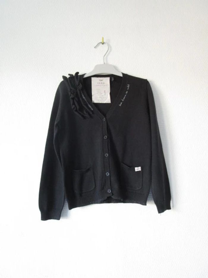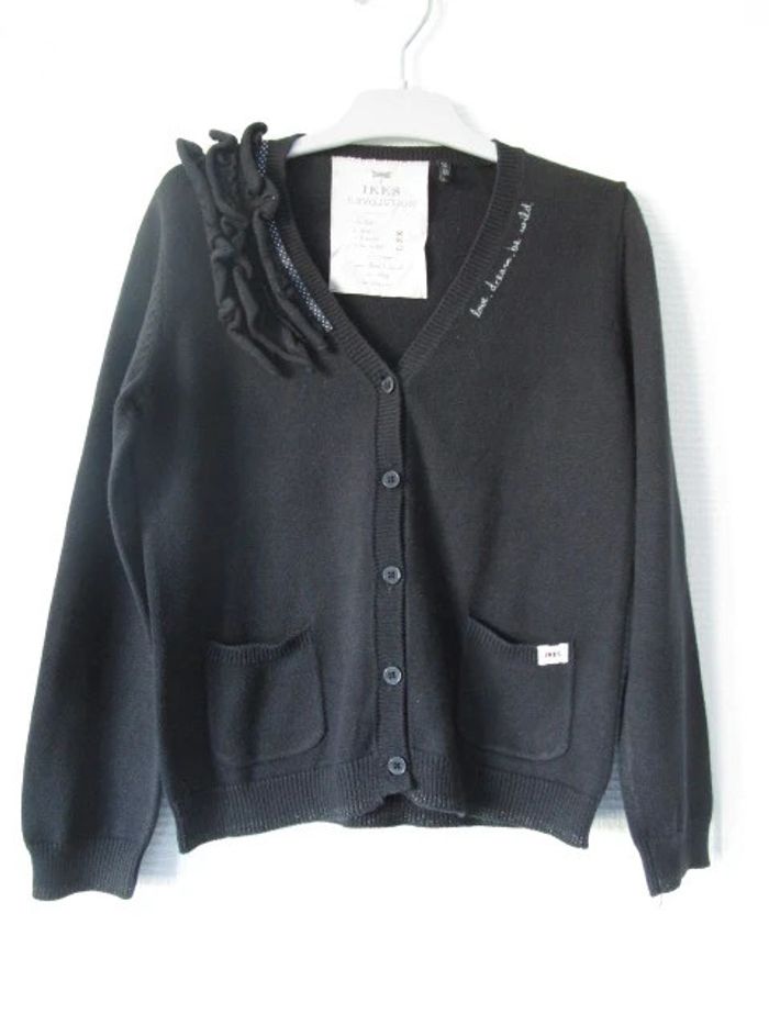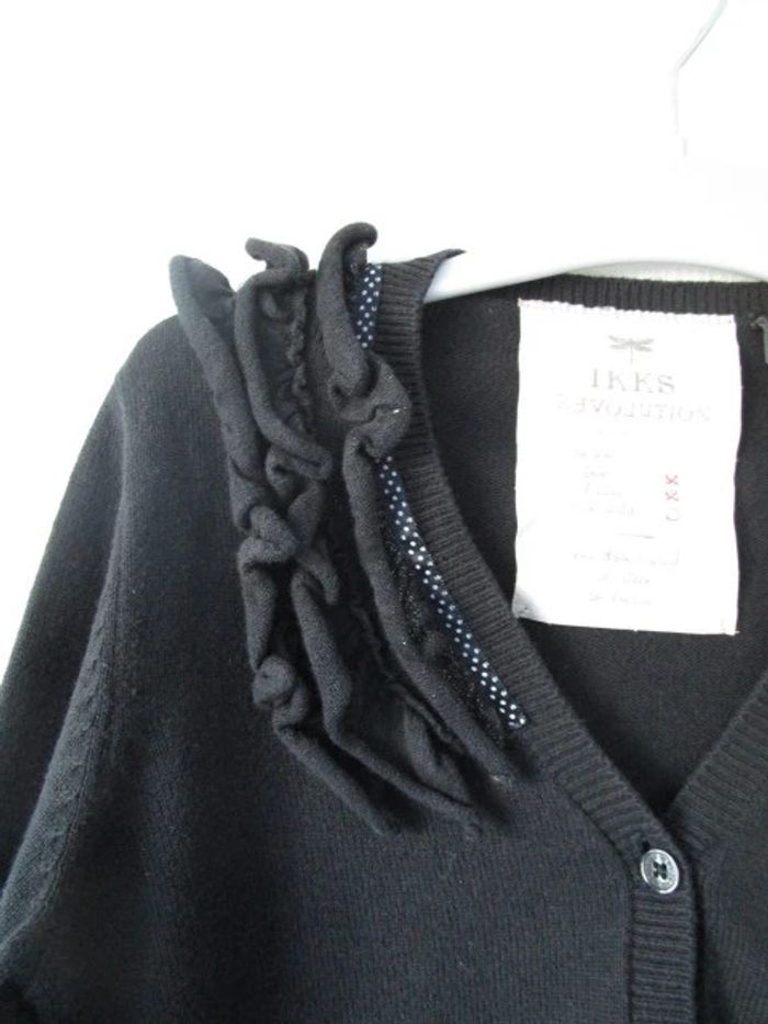 Gilet bleu marine de marque IKKS taille 5 ans Décolleté V Petits volants sur l'épaule droite 100% coton En très bon état #mamanbrade59fille5ans