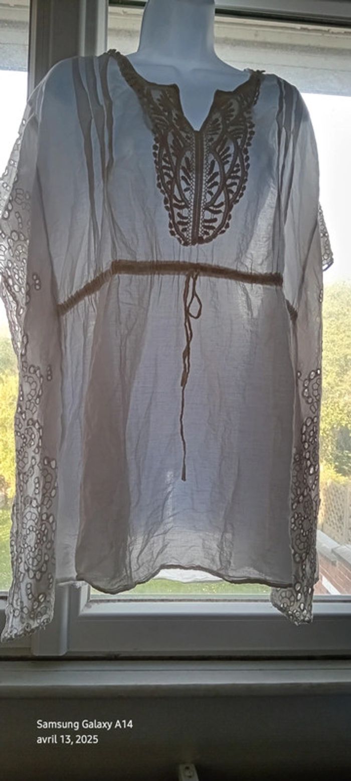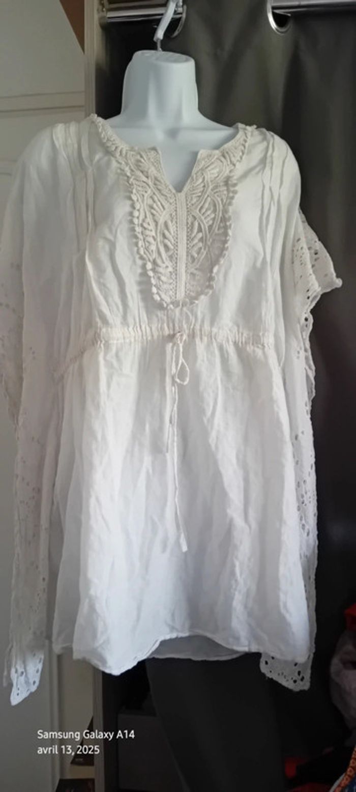 Blouse longue oversize style hippie avec broderies et dentelle blanche femme M raviya - photo numéro 1