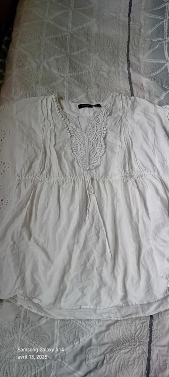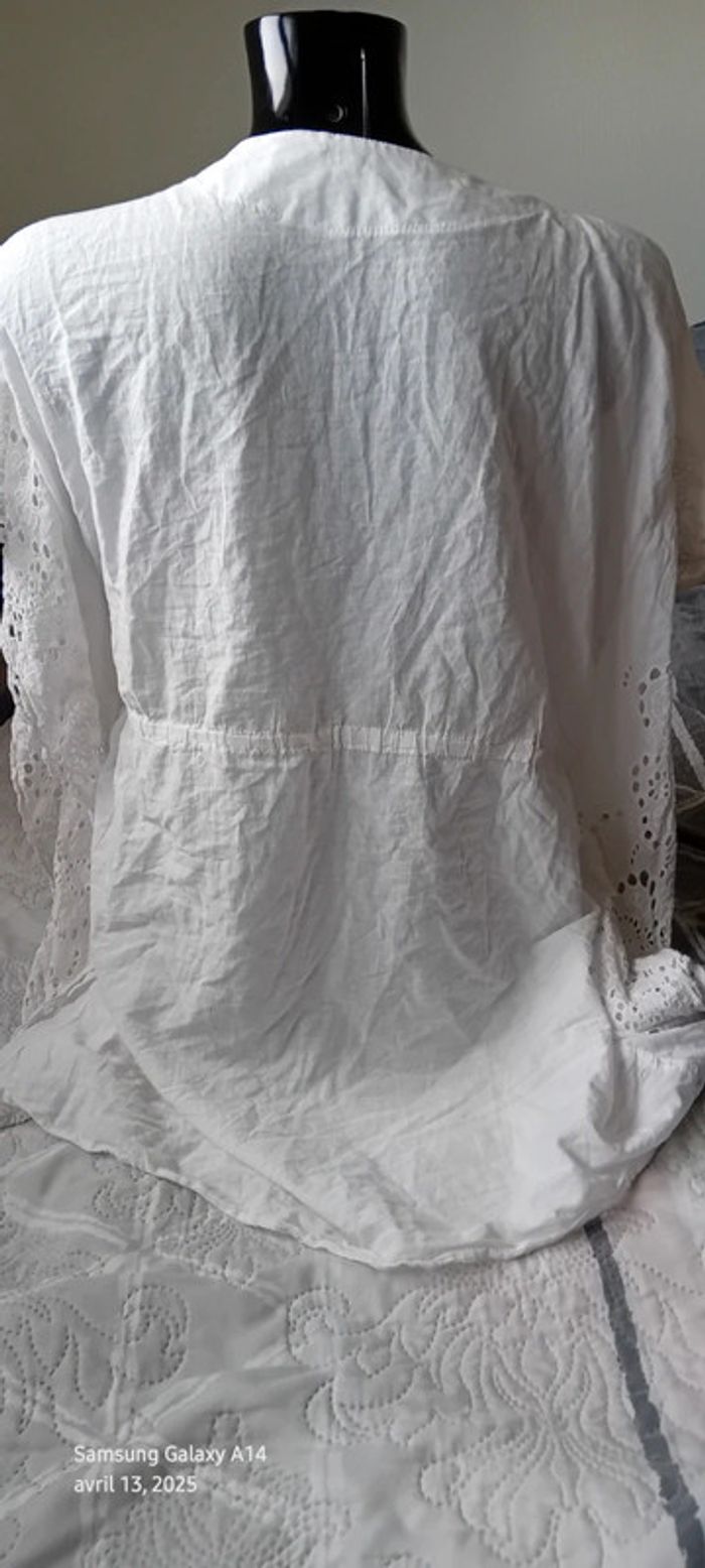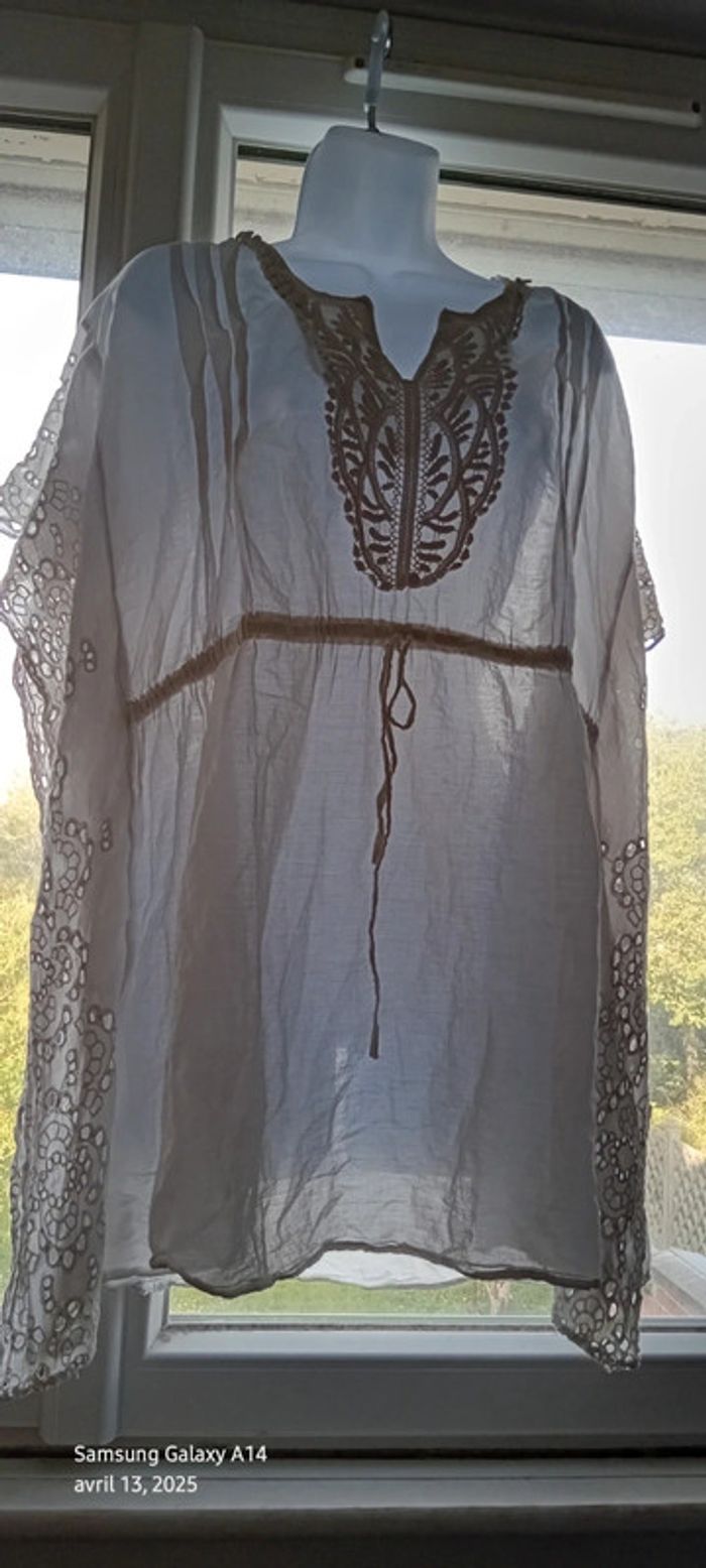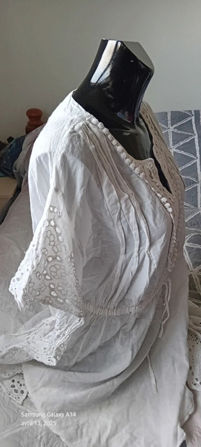 Blouse longue oversize style hippie avec broderies et dentelle blanche femme M raviya