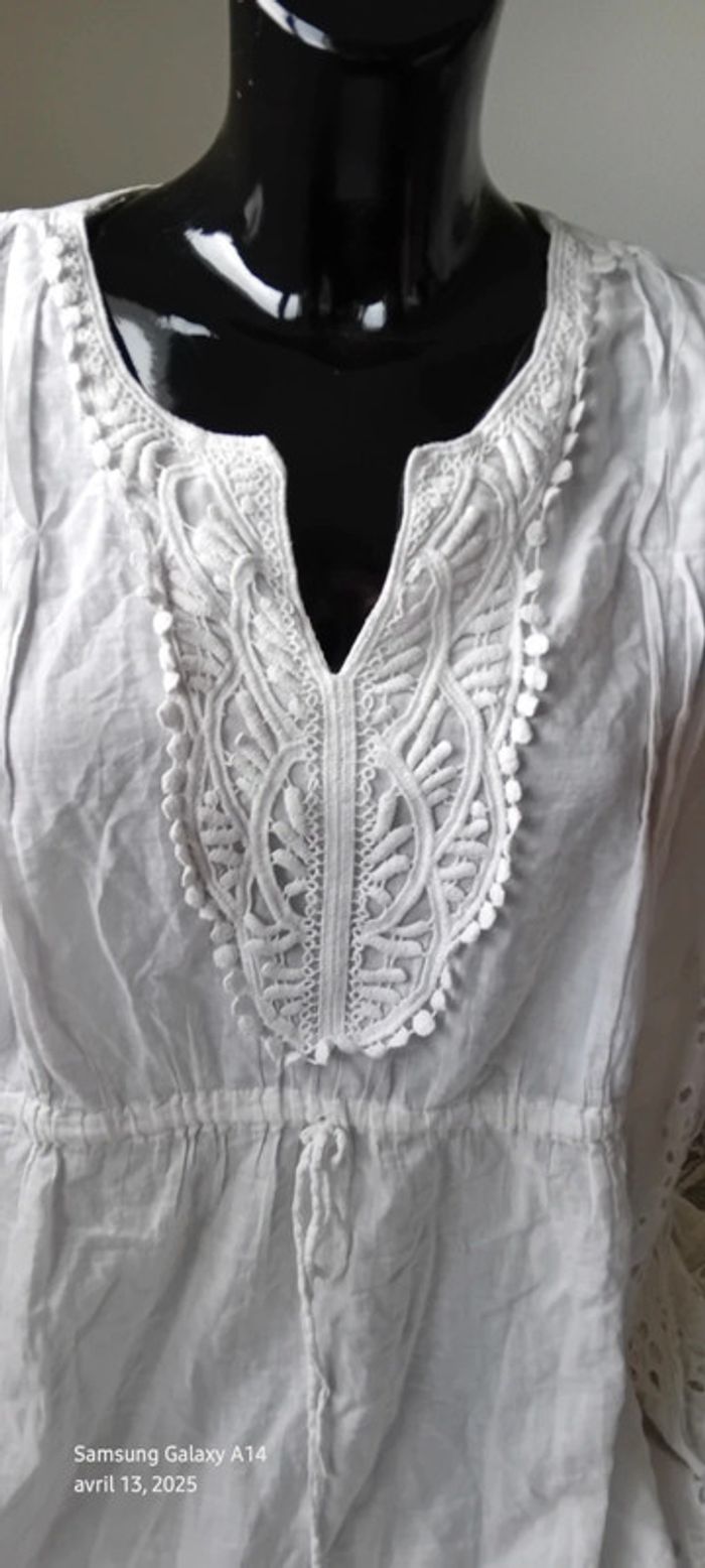 Blouse longue oversize style hippie avec broderies et dentelle blanche femme M raviya - photo numéro 2