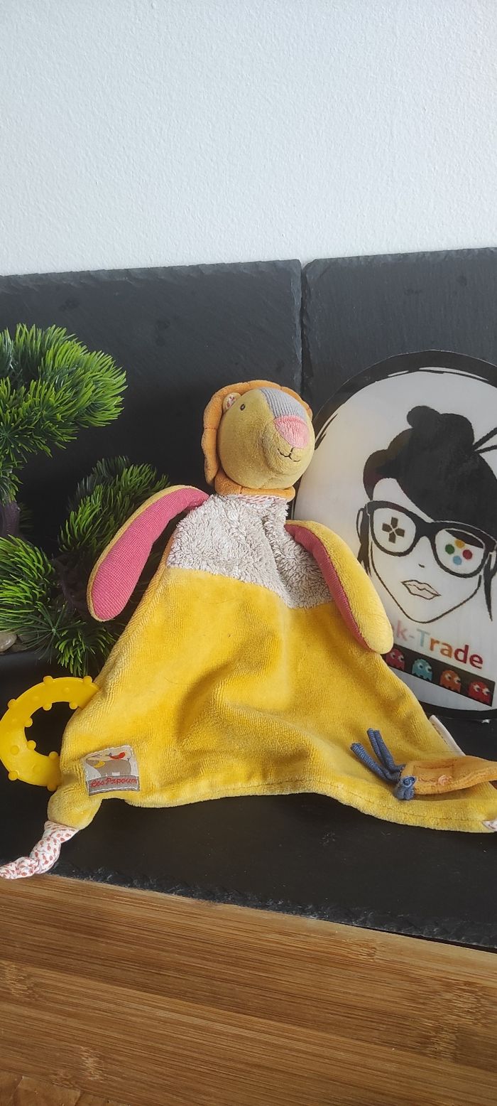 Moulin roty Les Papoums Doudou plat lion jaune orange éléphant anneau dentition