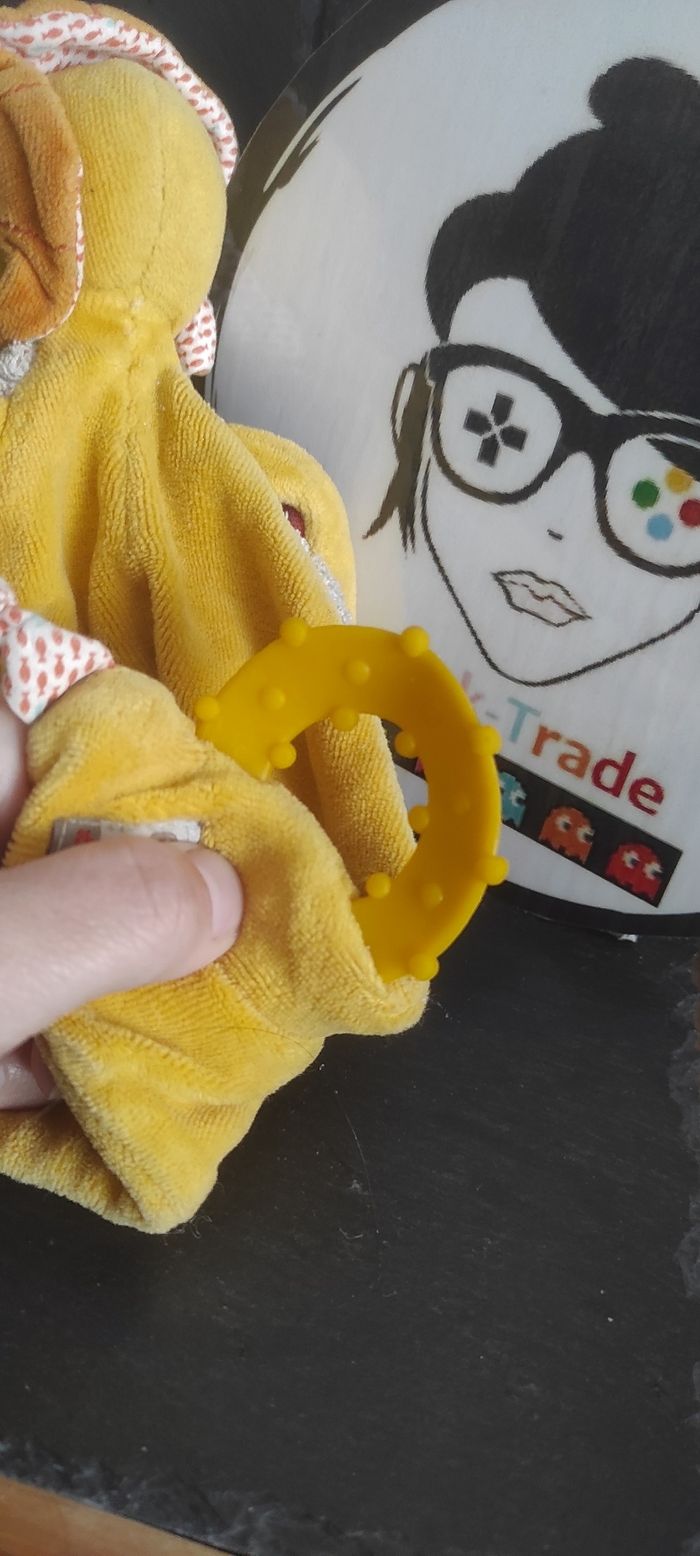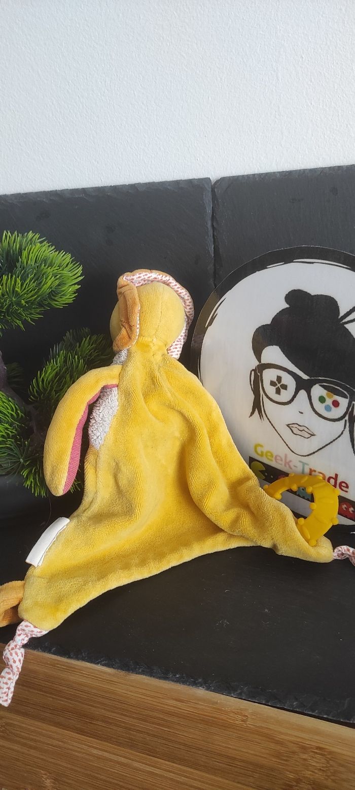 Doudou ours Comptine plat jaune bleu écharpe bleu clair ancien vintage knuffel DD00 Bel état L anneau de dentition est tordu Afin de ne pas abîmer les doudous et de laisser le choix dans l'utilisation de la lessive les peluches ne sont pas lavées avant envoi Description complément : #geektrademoulinroty Petit nettoyage à prévoir Vous achetez ce que vous voyez les photos font entièrement partie de la description Transport : Les frais de transport comprennent les frais du transporteur ainsi que l'emballage pour protéger au mieux votre achat. Chaque achat est envoyé en format colis avec numéro de suivi Le poids du colis est de 500g finit (je ne peux pas faire moins) il peut donc y avoir plusieurs objets dans le carton si vous le souhaitez (contactez moi afinde grouper les frais de port) Référencement : #geektradedoudou #peluche #plush  #doudou #enfan
