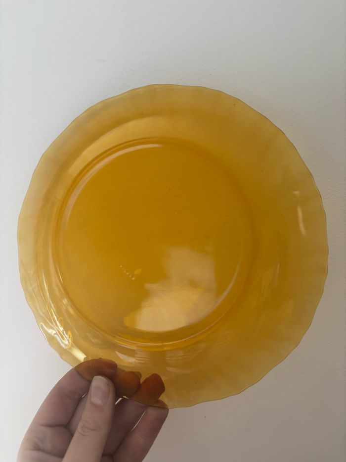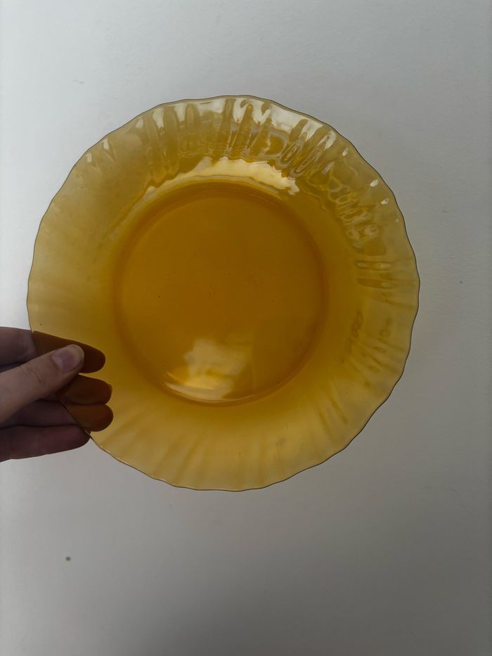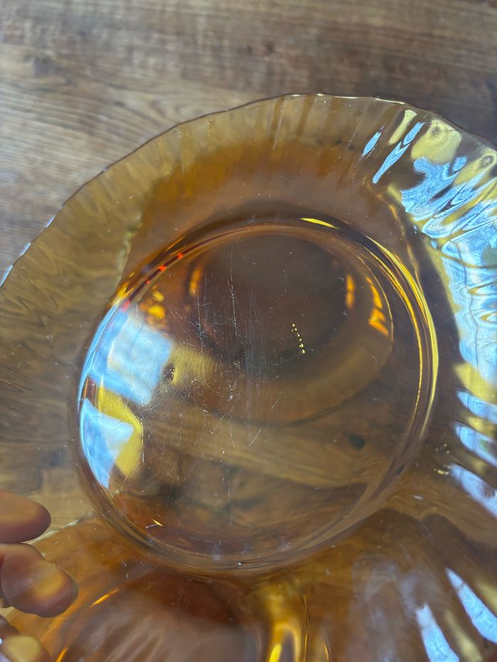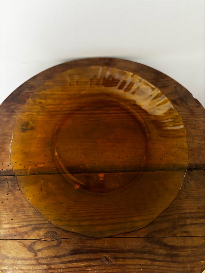 Vintage lot de 6 assiettes à dessert Made in france Couleur marron ambré Pas de marque au dos, seulement noté « France » En bon état, pas de casse, de minimes rayures d’usage très peu visibles. Restent très propres Diamètre 19 cm Hauteur 2 cm
