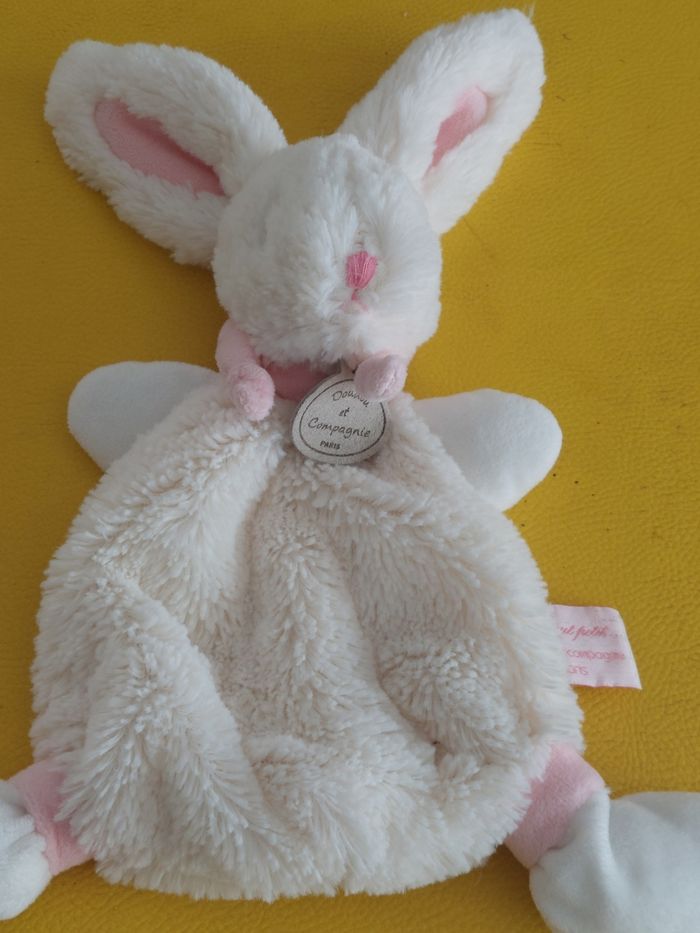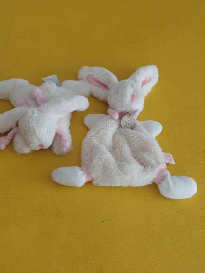 Lot doudous velours blanc/ rose Doudou et compagnie