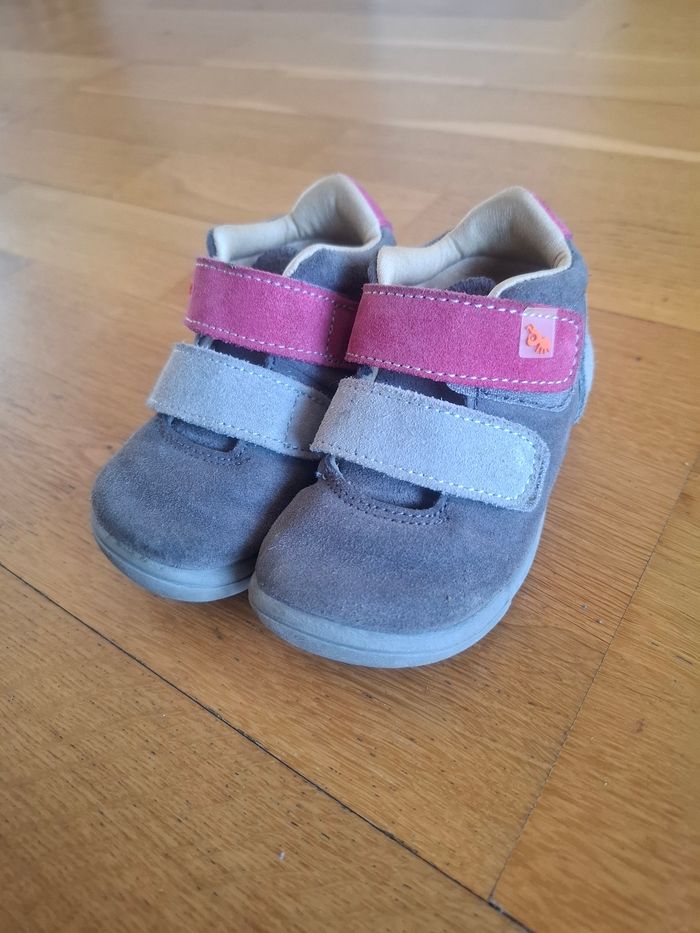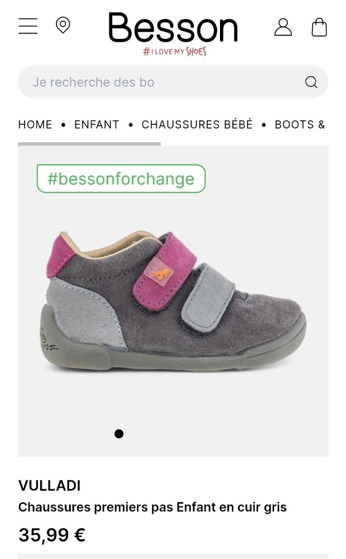 Chaussures premiers pas. Les semelles sont souples et légèrement arrondies, idéales pour les premiers pas.