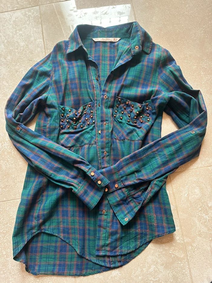 Chemise femme Zara Des petites taches sur le devant voir photo d’où le prix. Pas très visibles et si on rentre la chemise dans le jeans c’est parfait. Elle reste en bon état général voir très bon. #zara #cheliseacarreaux #chemisezara