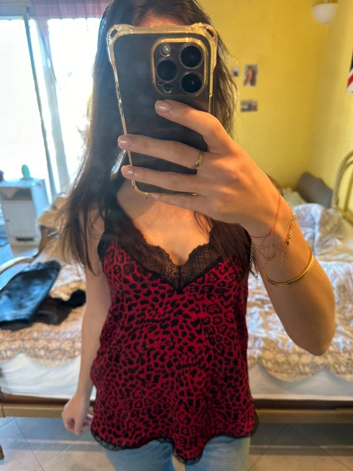 Débardeur léopard rouge et noir stradivarius - photo numéro 1