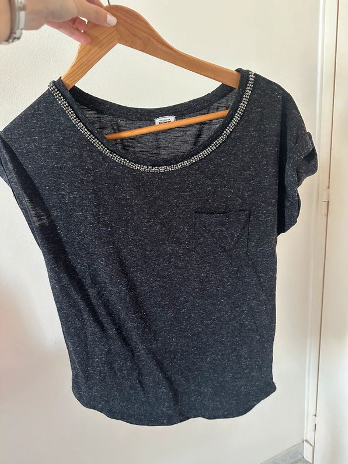 T shirt noir avec strass pimkie - photo numéro 1