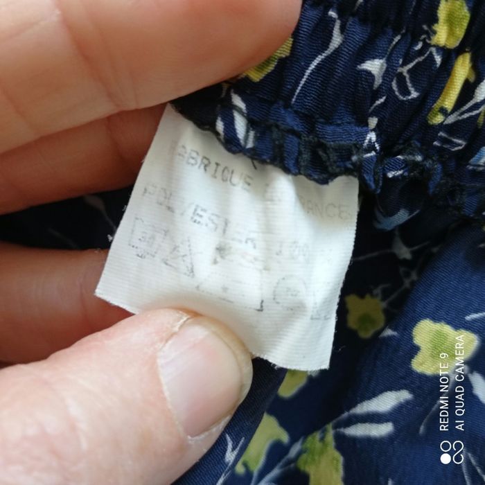 Polyester. Fluide. Boutons. Poches. Taille estimée. Mesures prises à plat : largeur à la taille : 34cm, longueur : 76cm. C16