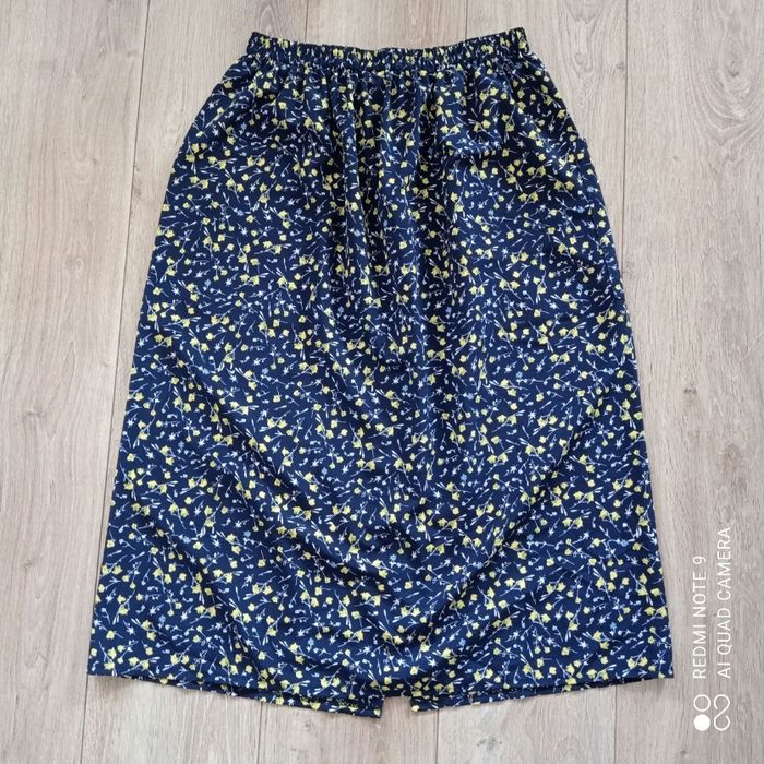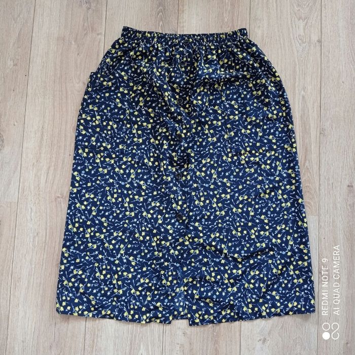 Jupe marine à fleurs jaunes t38/40 vintage - photo numéro 7