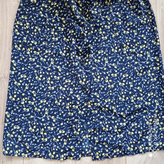 Jupe marine à fleurs jaunes t38/40 vintage - photo numéro 8