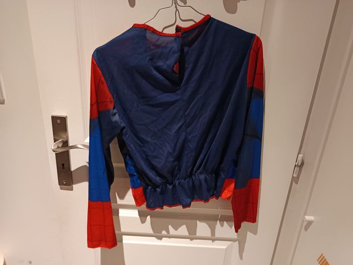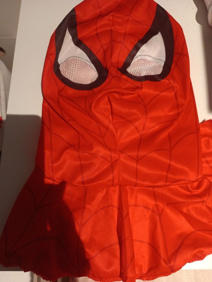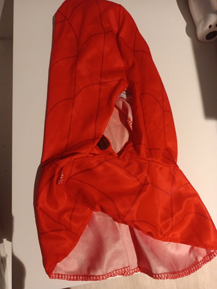Déguisement spiderman avec sa cagoule, en très bon état. Très peu porté. Les deux se ferment avec des scratchs. Il n'y avait pas de bas vendu avec. Je pense que c'est du 8 ans mais je ne suis pas sûr. Ce n'est pas écrit.