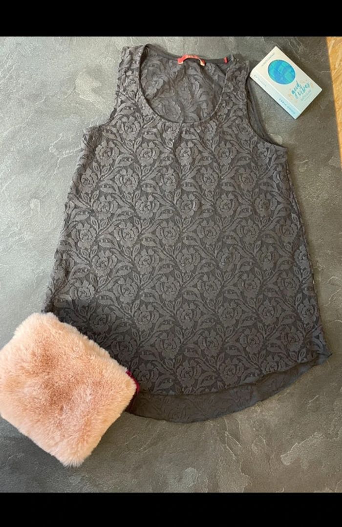 Débardeur blouse dentelle gris transparence taille 36 Esprit - photo numéro 3