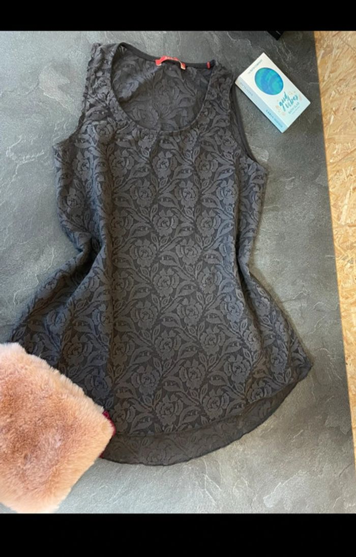 Débardeur blouse dentelle gris transparence taille 36 Esprit - photo numéro 2