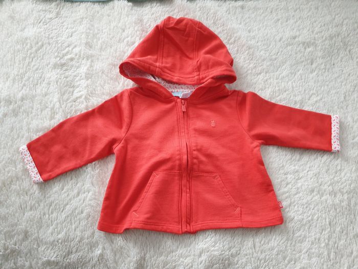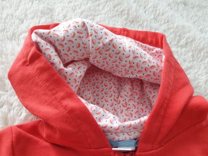 Gilet ML zippé rouge à capuche Taille 6 mois / 68 mois Obaïbi Gilet léger manches longues rouge à capuche - fermeture avant à zip détail Obaïbi - douclure capuche à motif petites feuilles - revers avec même motif aux manches Excellent état, comme neuf - Porté 1 fois Pour accéder rapidement au dressing fille ou 6 mois : #shoealacreme_dressingfille #shoealacreme_fille6mois