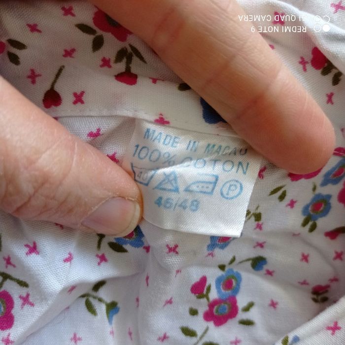Vintage. Coton. Étiquetée t46/48. Selon moi taille plus petit. Mesures prises à plat : épaules : 39cm, aisselles : 55cm, longueur : 71cm. C16