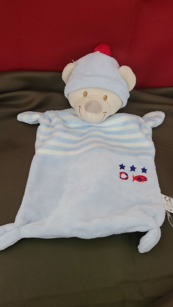 Doudou ours marin rayé bleu et blanc - photo numéro 1