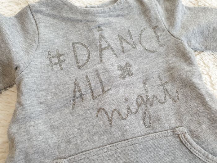 Robe sweat/pull gris chiné Taille 6 mois / 62-68 Lupilu Robe sweat/pull gris chiné - motif impression argenté "Dance all night" devant - 2 poches avant - intérieur molletonné (convient mieux pour saison automne/hiver) - fermeture arrière à boutons pression Taille grand Très bon état Pour accéder rapidement au dressing fille ou 6 mois / 68 : #shoealacreme_dressingfille #shoealacreme_fille6mois