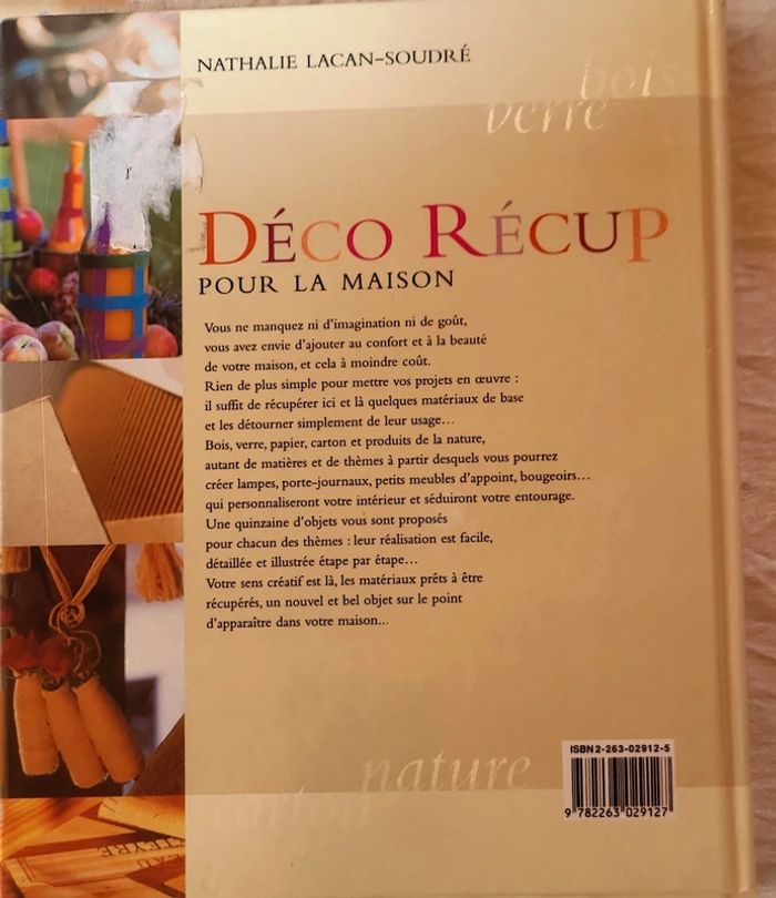 Article en bon état sauf un défaut voir photo Deco Recup. Pour La Maison Livre de Nathalie Lacan-Soudré Suivre Ce livre en 4 chapitres, selon les matières travaillées: bois, verre, papier et carton, nature. Pour chacun, une quinzaine d'objets à créer sont proposés.
