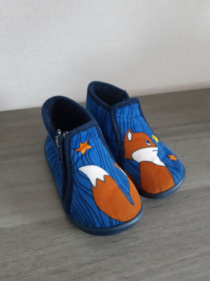 Petite paire de chaussons bleu marine avec écureuil. Très bon état. Semelles pas du tout abîmés. Taille 18.