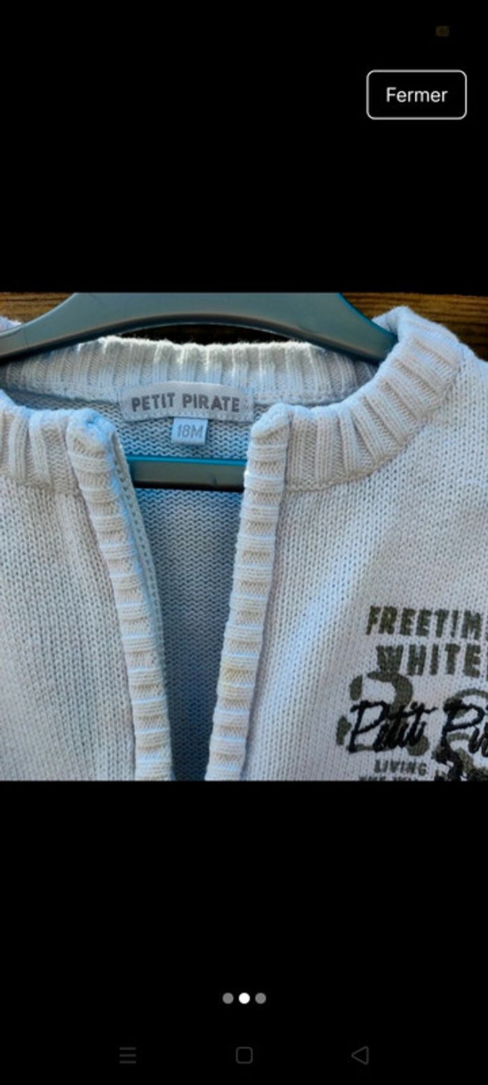 Gilet blanc petit pirate,2 ans garçon. Porté quelques fois, idéal mi saison et été #gilet24mois #gilet2ans #giletgarcon #giletgarcon24mois