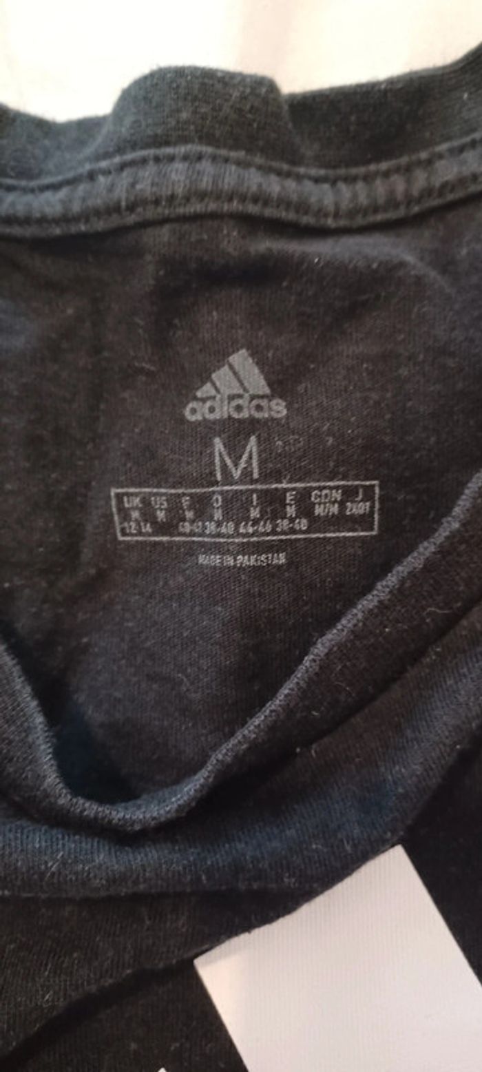 🌼 Tee-shirt noir adidas 🛍 Il a déjà été porté mais reste en très bon état. C'est un M enfant, donc du 12-14 ans (j'ai ajouté les mesuree du tee-shirt sur les photos si besoin) 📩 N'hésitez pas à me contacter pour plus d'informations :)