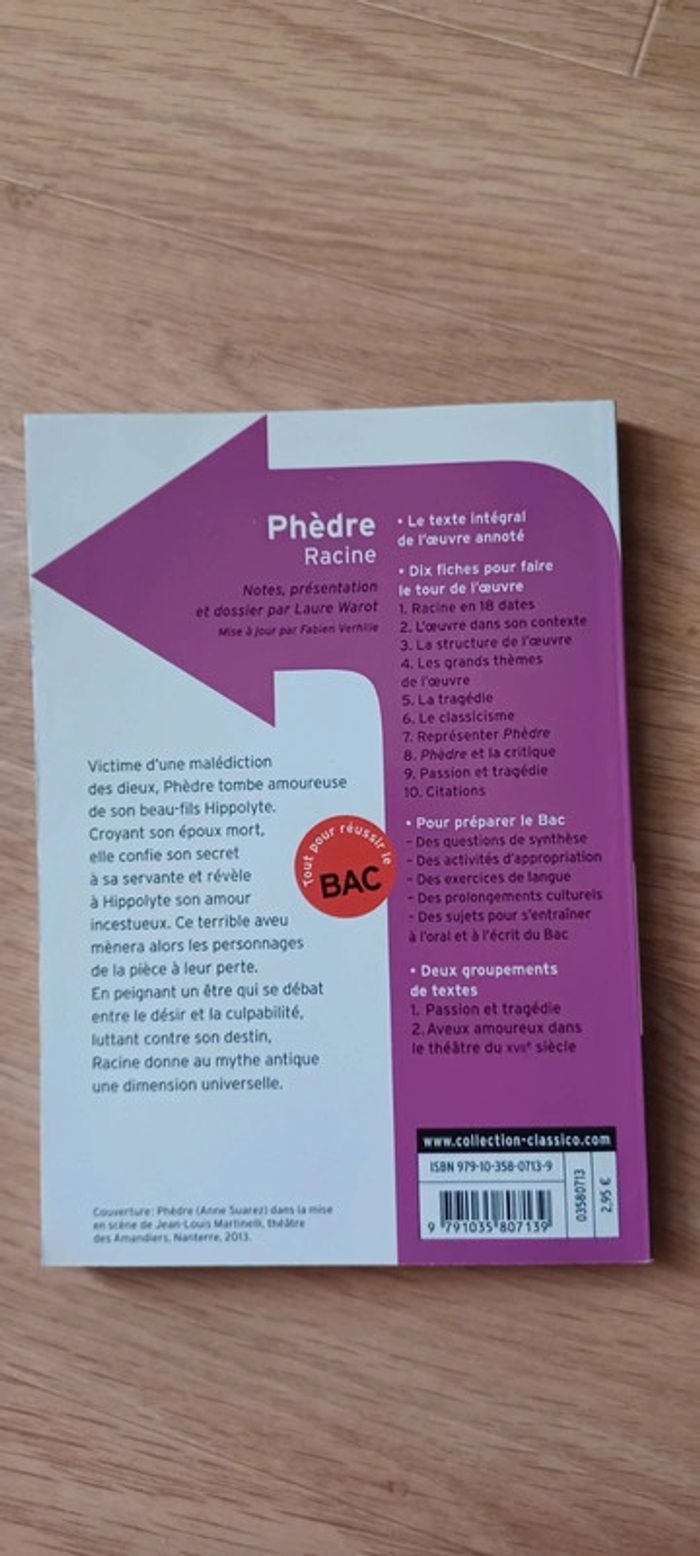 🛍 Livre Phèdre de Racine 🌼 Il est en très bon état 📩 N'hésitez pas à me contacter pour plus d'informations et n'hésitez pas à regarder mon dressing, je vends de tout et j'essaie de me débarasser d'un maximum de choses en vue de mon prochain emménagement :)