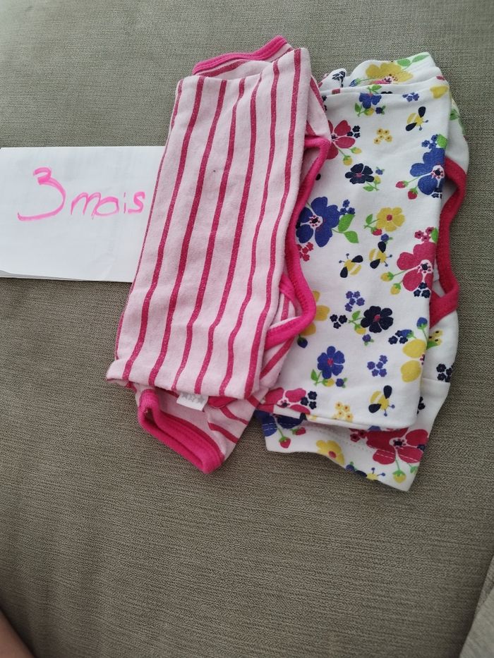 Bonjour Vends Lot de 2 bodies manches courtes 3 mois Comme neufs Lily&jack & watch me grow
