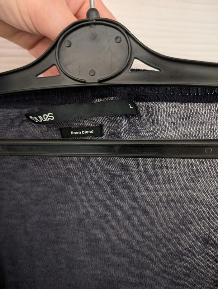 Gilet en v, neuf jamais lavé ni port ensuite étiquette enlève, fils tirés au niveau de l'étiquette