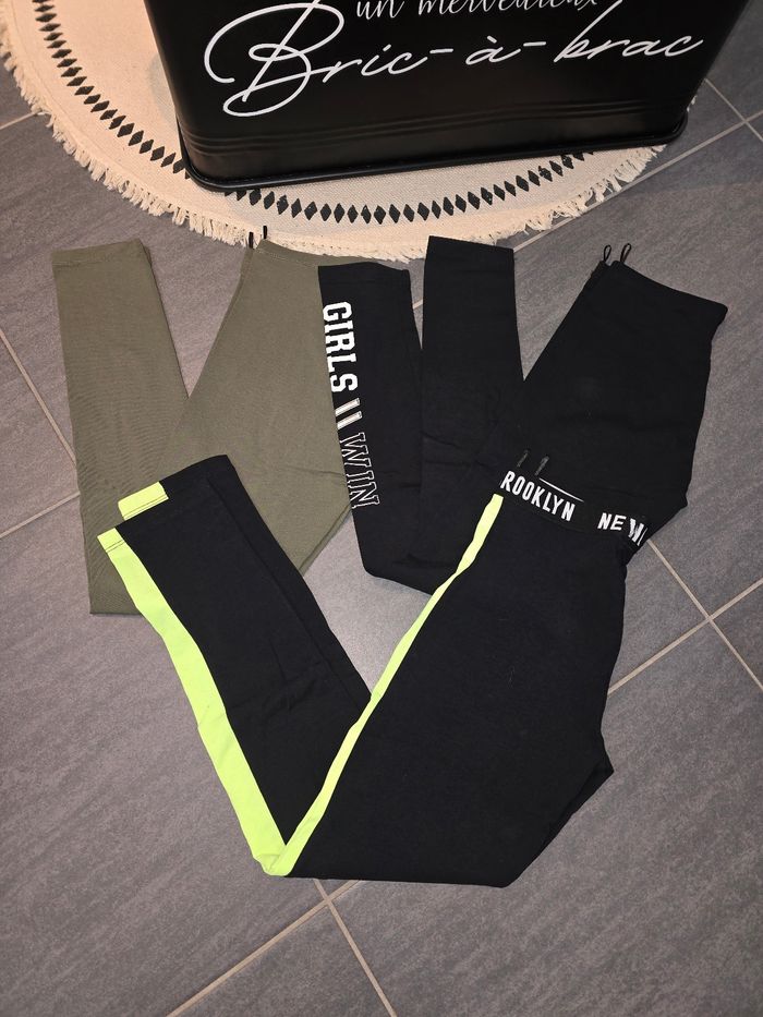 Bonjour 👋 Je vend ce: 👉 lots de legging c&à taille 158 - un noir et vert mis une fois où deux - un kaki juste laver pas porter - un noir avec écriture juste laver pas porter Maison 🏠 non fumeur et sans animaux