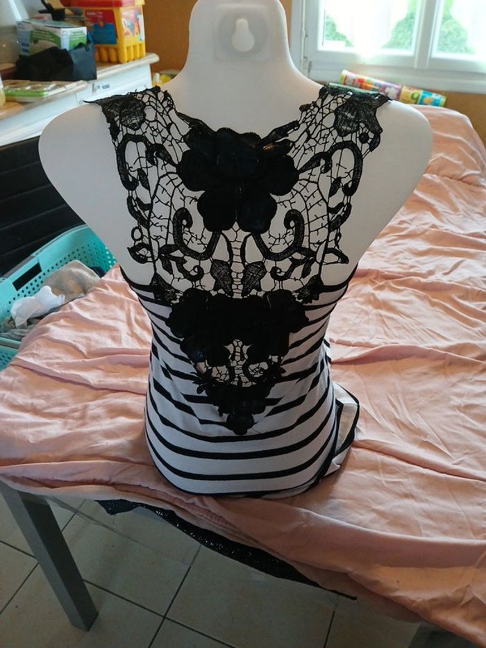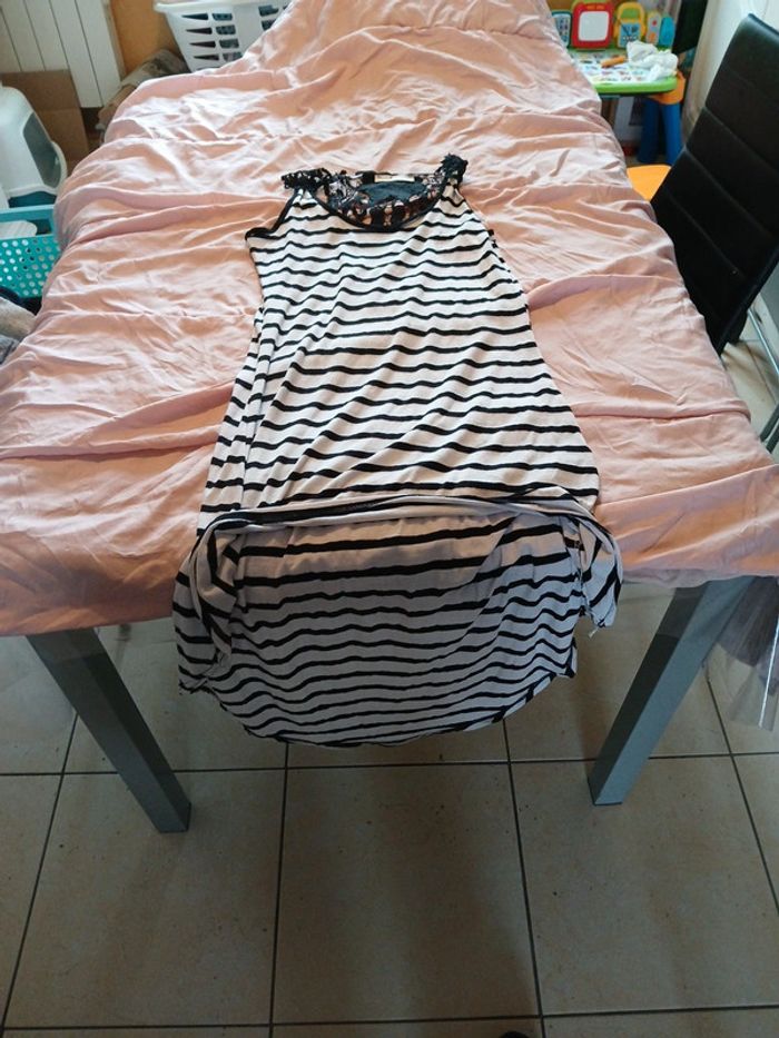 Robe courte devant et longue derrière style marinière avec dentelle dans le dos à recoudre devant voir photo