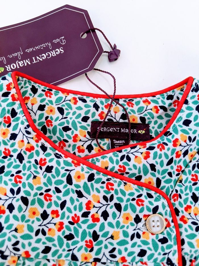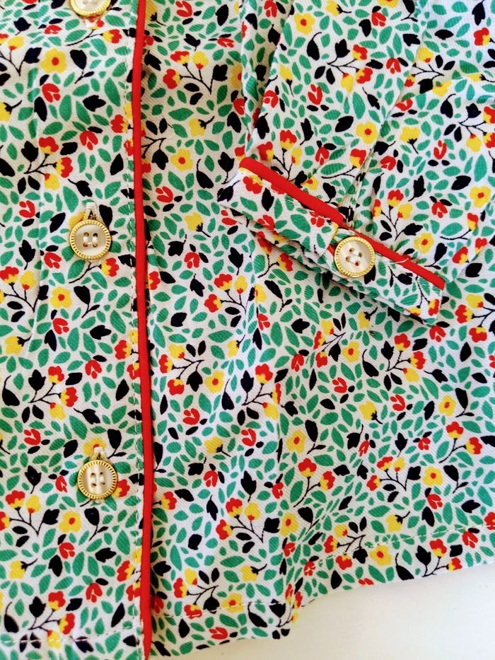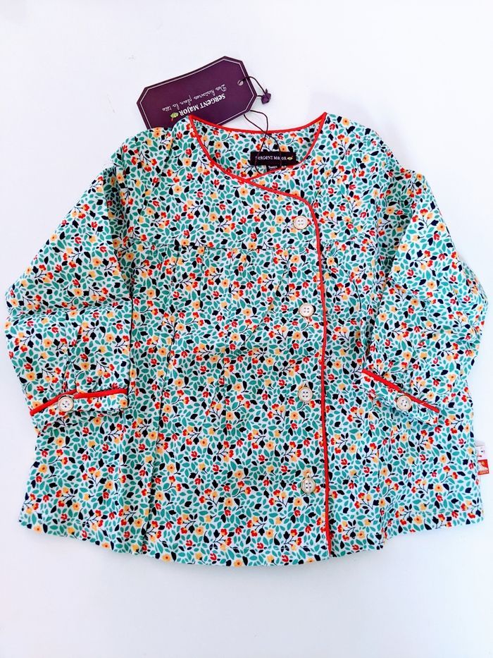Magnifique blouse tunique chemisier liberty sergent major 9 mois 71 cm Imprimé petites fleurs feuillages type Liberty En 100% coton de qualité supérieure, souple, doux et texturé (tissage serré sergé) Très jolis boutons nacrés et dorés Passepoil rouge Sergent major 9 mois 71 cm Neuf avec étiquettes #yipin_bebe_9mois #yipin_bebe_9mois_fille