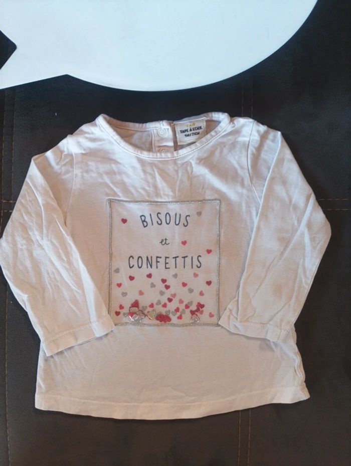 Tee shirt chemise manches longues Fille 9 mois bisous et confettis Cœur Tao - photo numéro 1