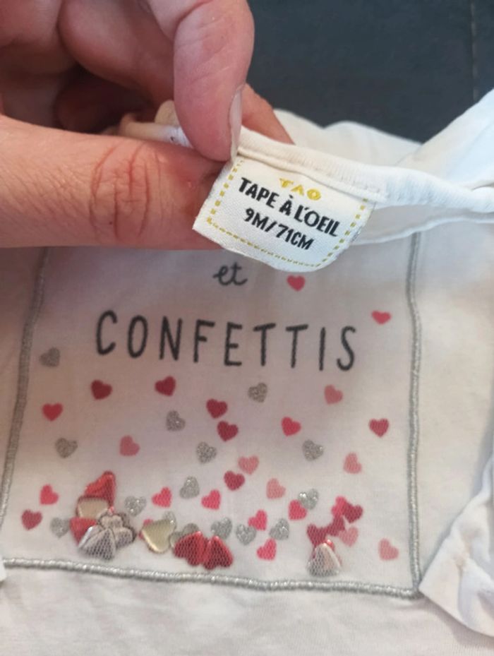 Tee shirt chemise manches longues Fille 9 mois bisous et confettis Cœur Tao - photo numéro 3