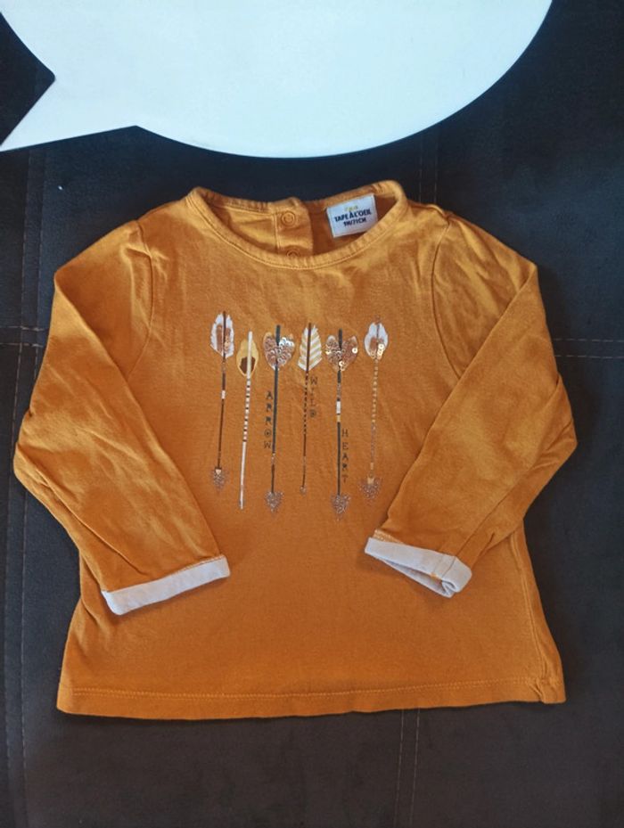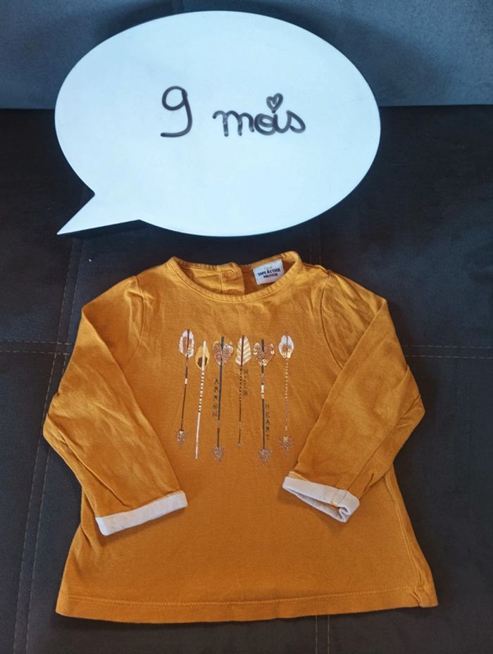 Tee shirt chemise manches longues Fille 9 mois plume lance cœur Tao