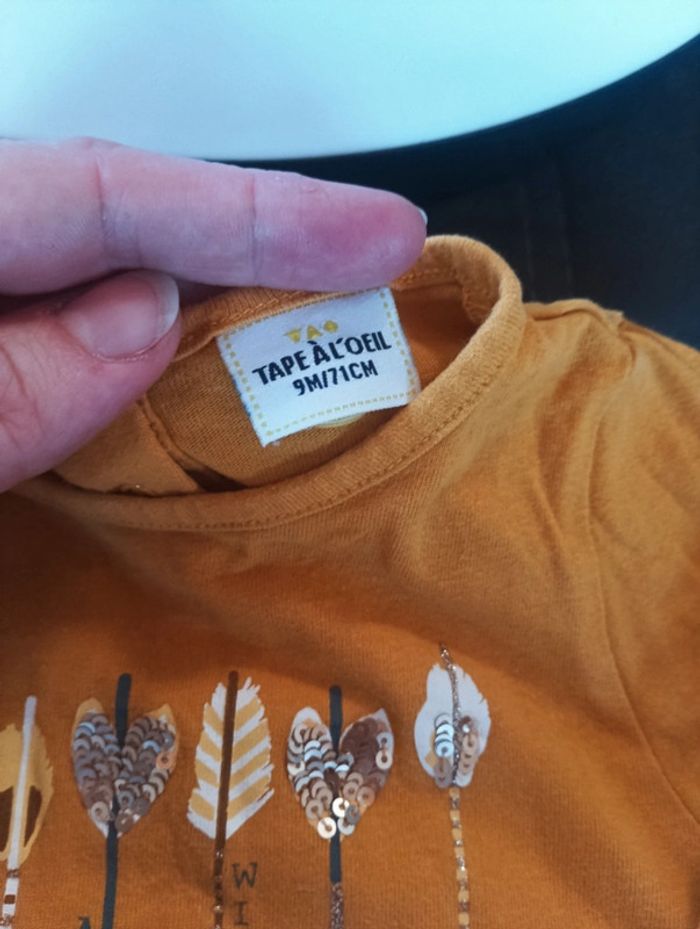 Tee shirt chemise manches longues Fille 9 mois plume lance cœur Tao - photo numéro 3