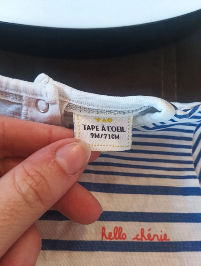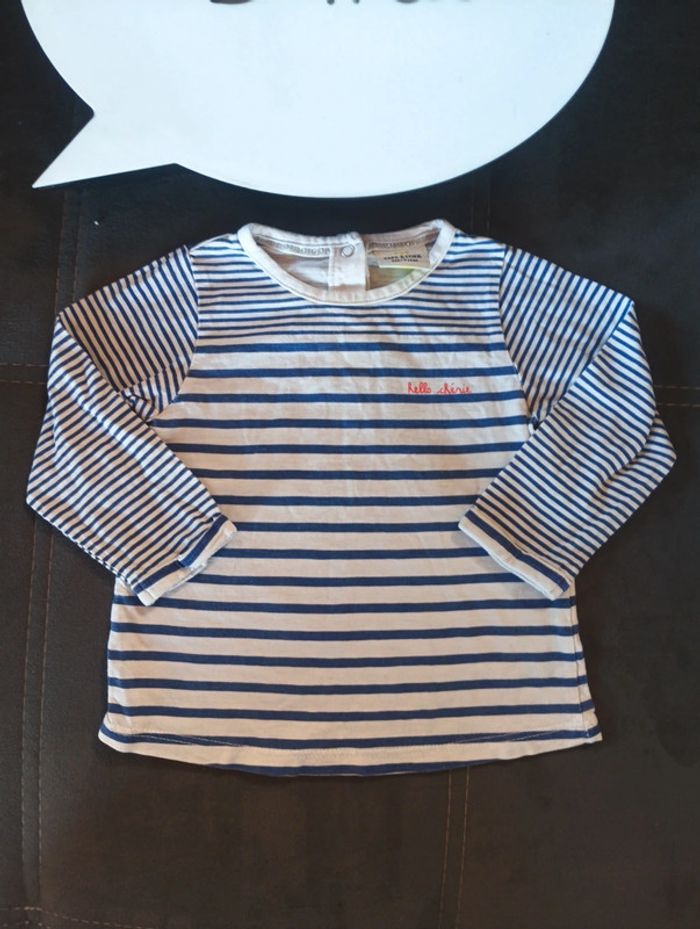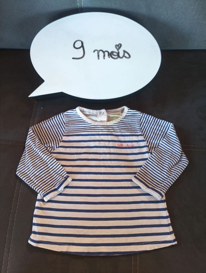 Tee shirt chemise manches longues Fille 9 mois marinière rayures Hello chérie Tao