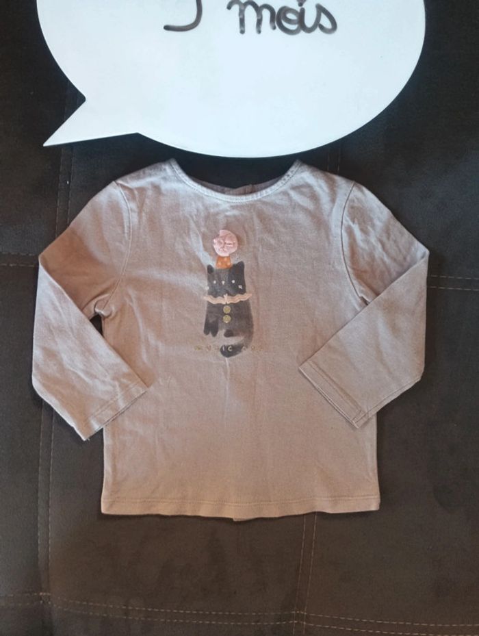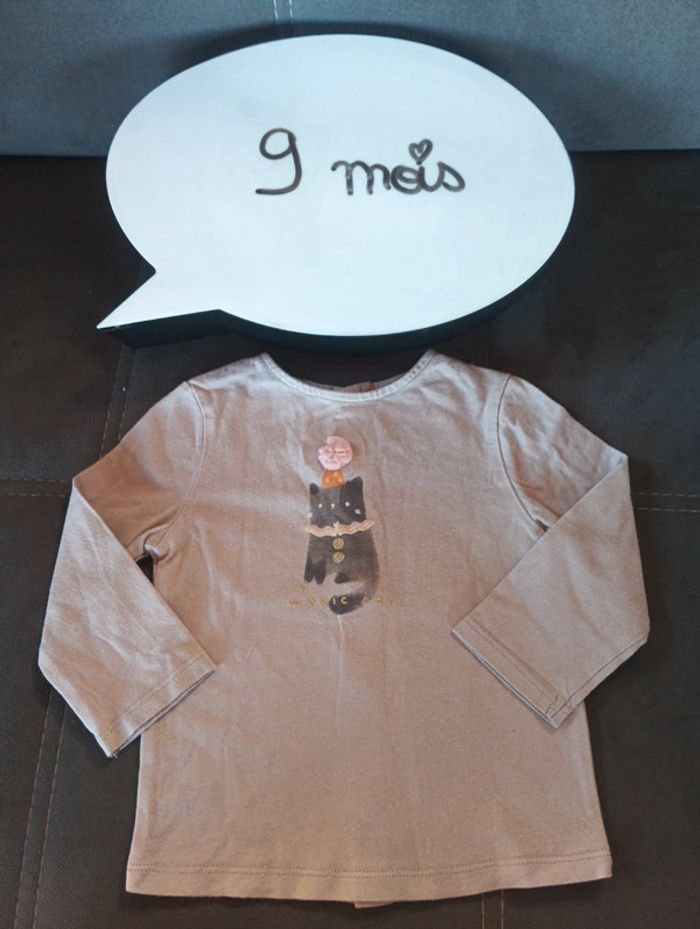 Tee shirt chemise manches longues Fille 9 mois magic cat chat Kiabi Eco conception 100% coton bio - photo numéro 1
