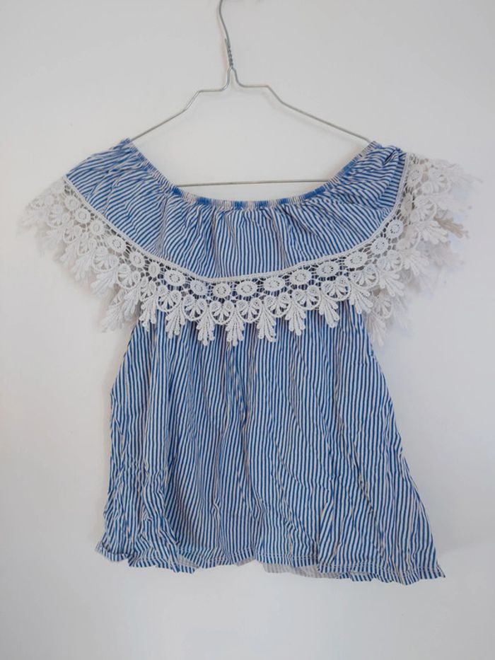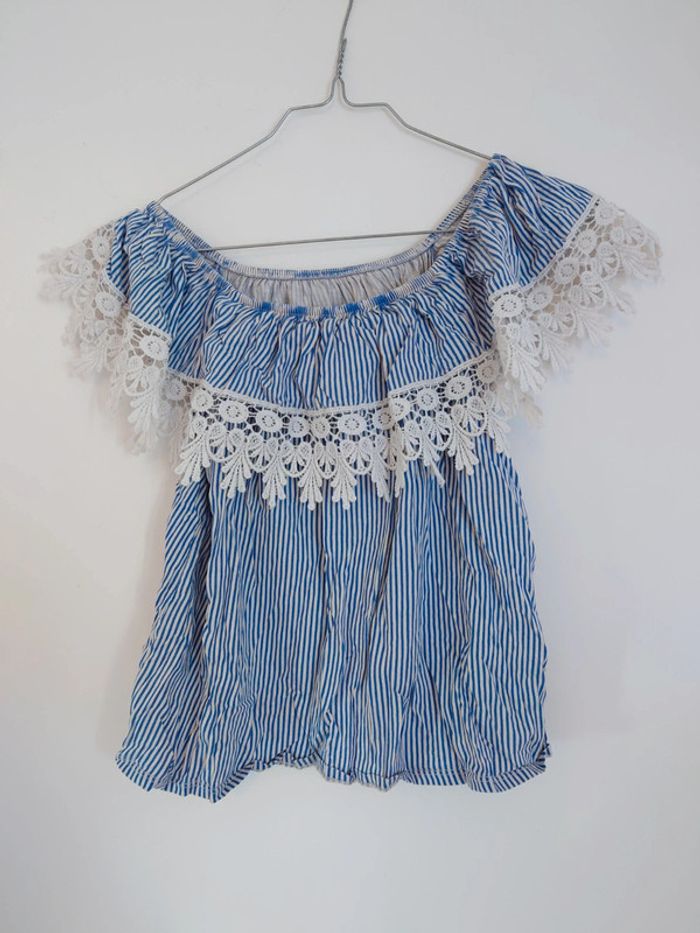 T-shirt épaules dénudées à dentelle bleu et blanc rayé - dressing trié par tailles - photo numéro 1