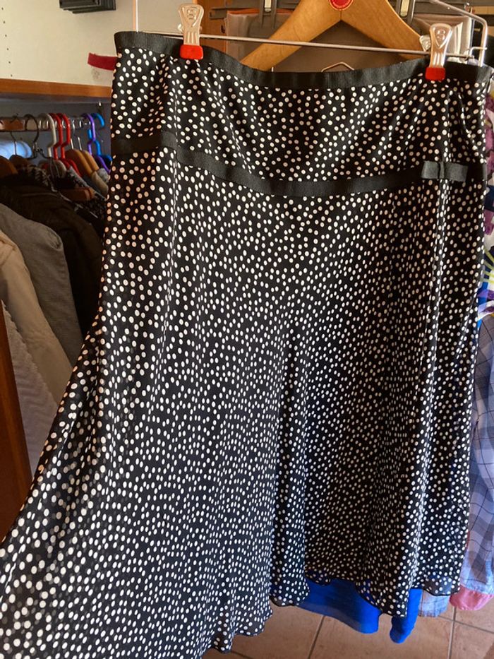 jupe matière fluide légèrement évasée petits pois joli détail noeud