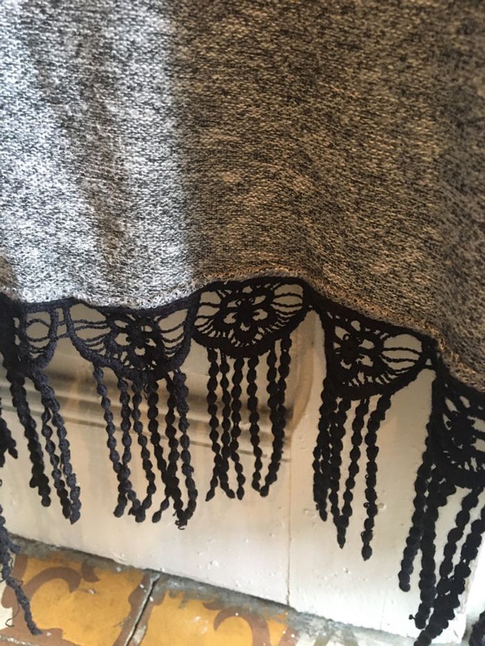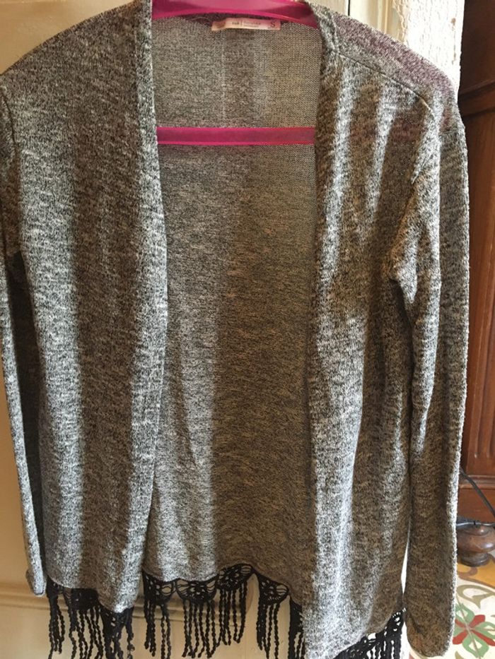 gilet bas frangé style crochet gris chiné