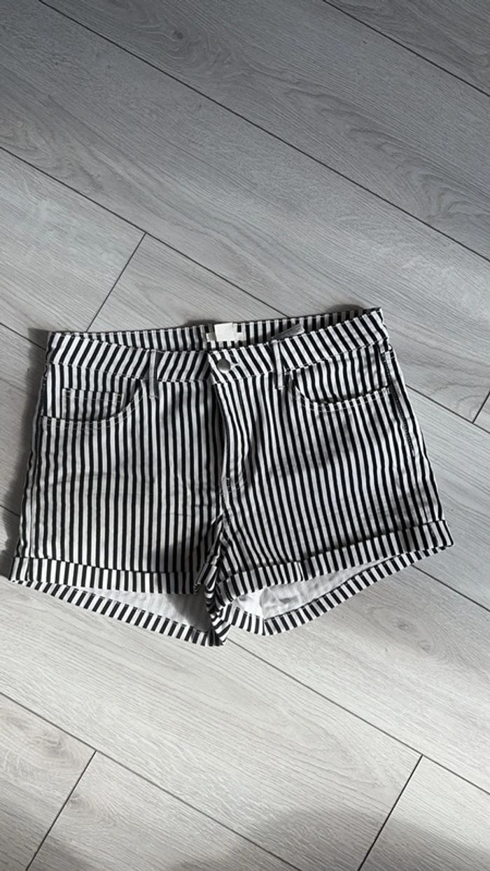Short en jeans rayé noir et blanc - photo numéro 1