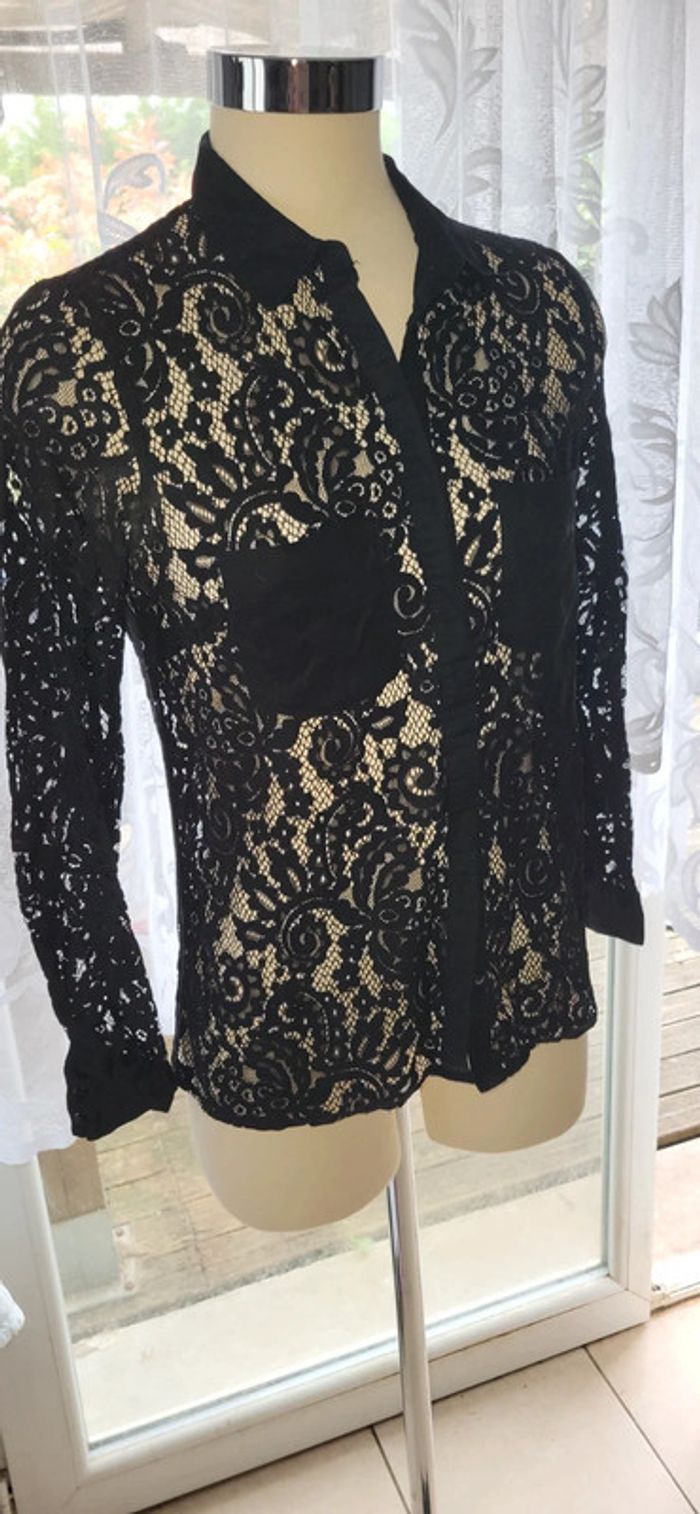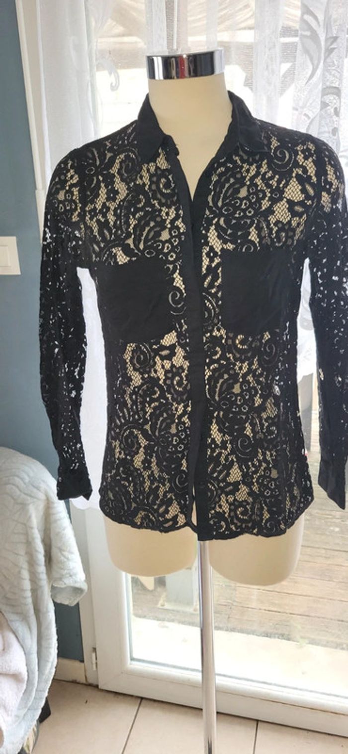 Chemise dentelle noire transparente avec 2 poches niveau poitrine . Pleins d'autres articles en vente à petit prix N'hésitez pas à faire un tour dans mon dressing #a2life_taille38