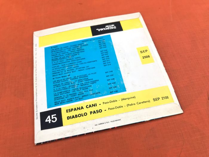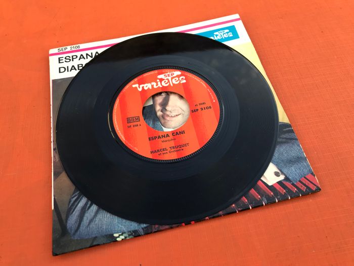 Vinyle 45 tours Marcel Truquet son accordéon et et son orchestre Espana cani Sep variété 2108 A Espana Cani Composed By – Marquina B Diabola Paso Composed By – Pedro Carettero