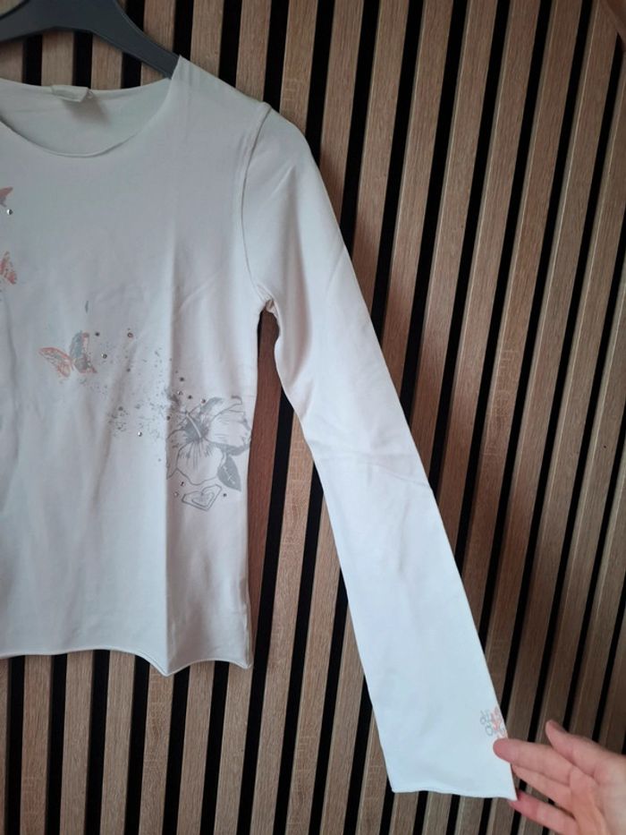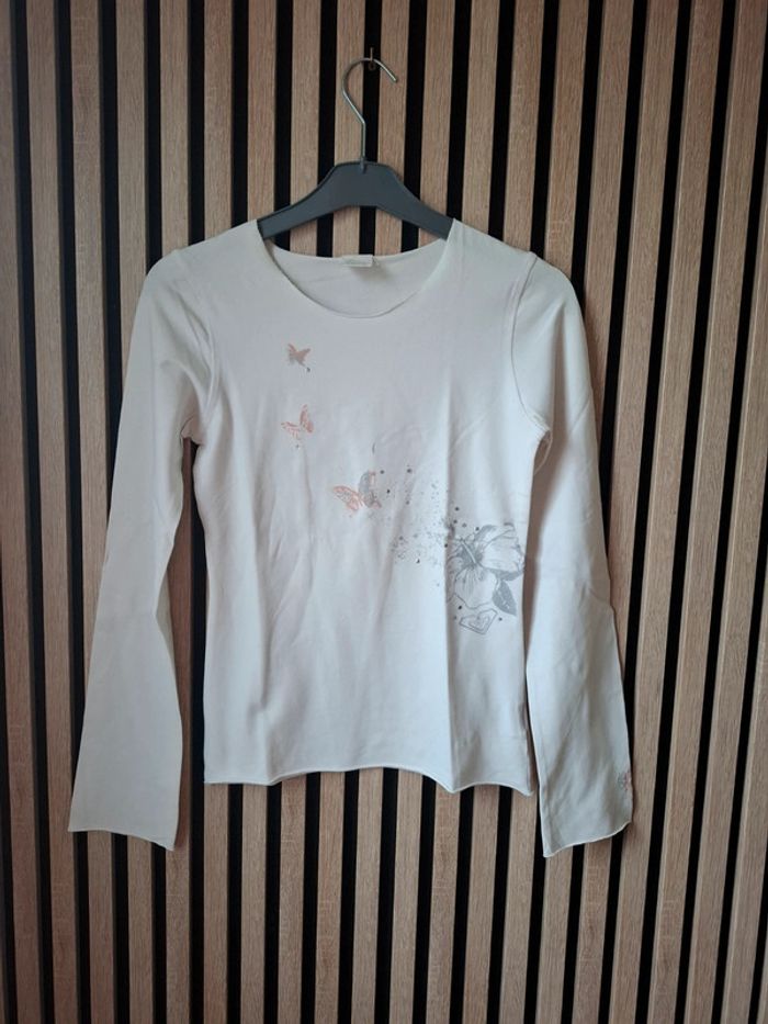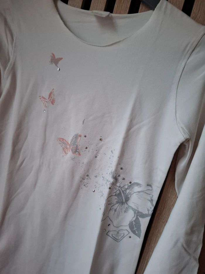 Tee shirt manches longues blanc Roxy T 38 Coton et élasthane Imprimé fleurs et papillon et petits strass argentés Mesures à plat Aisselles à aisselles 38/40 cm Longueur 55 cm N hésitez pas à visiter mes # #clementine13430femmest38 #roxy36 #roxy48 #teeshirtroxy36 #tesshirtroxy3638