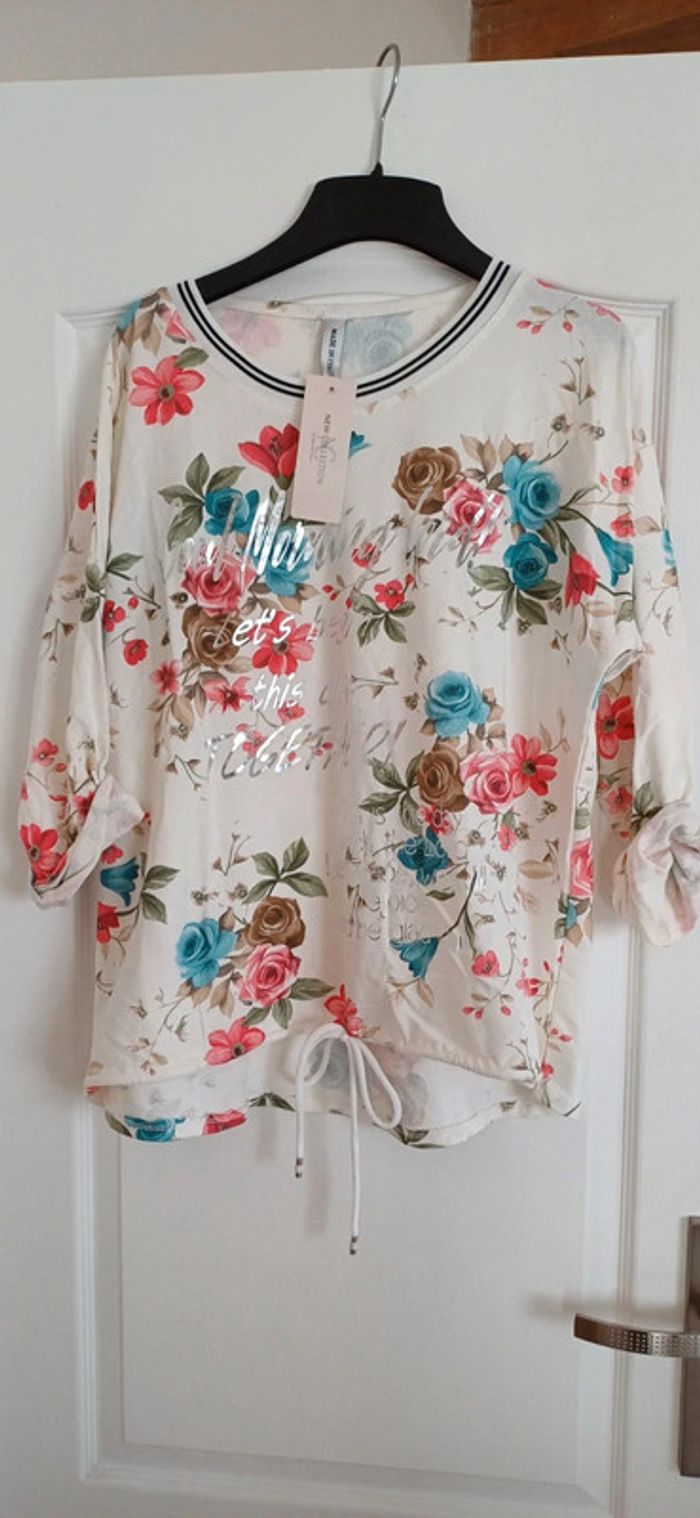 Haut fleuris ceinturable taille unique du 36 au 44 neuf