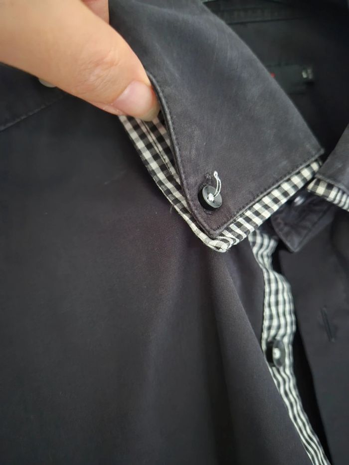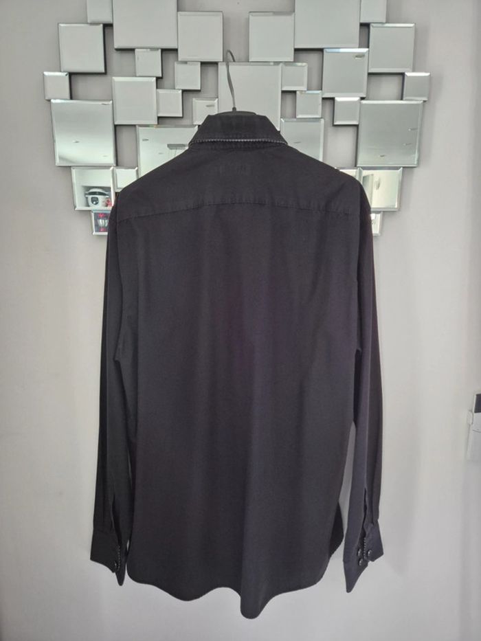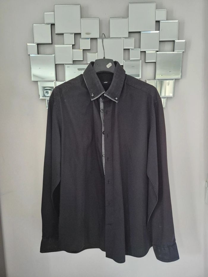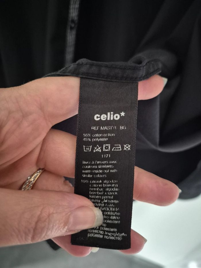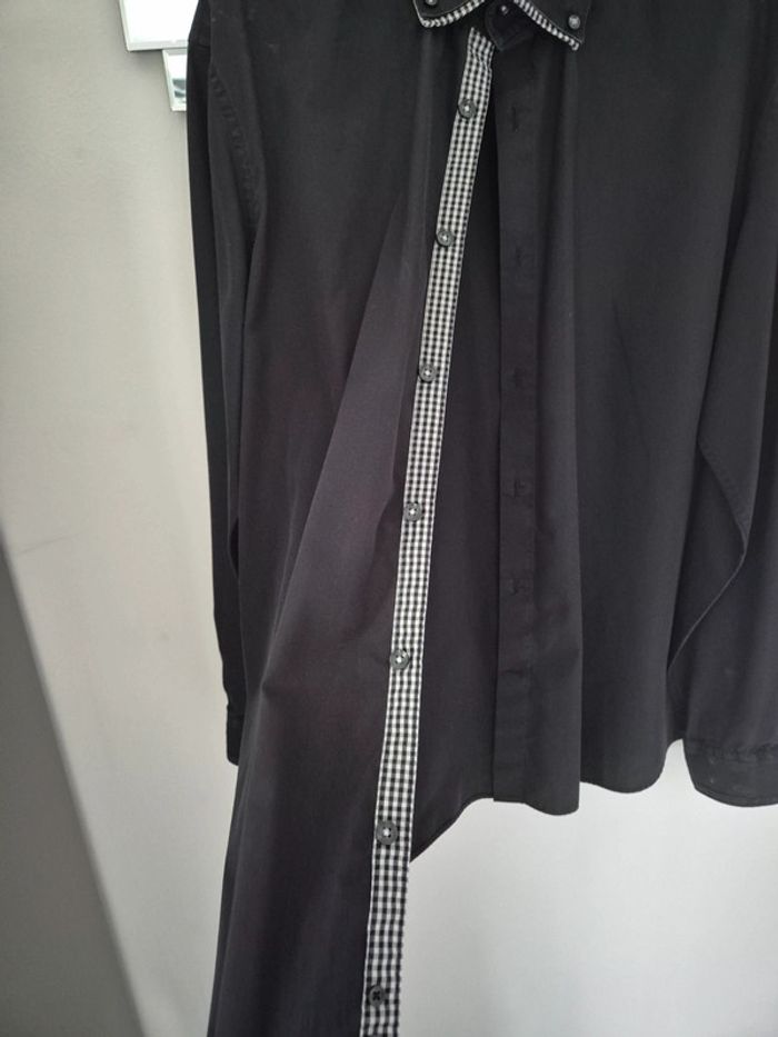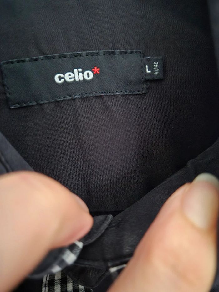 Jolie chemise noire Célio Finition à carreaux noirs et blancs le long des boutons et au col Taille L En très bon état (juste petite usure aux manches voir photos) #virginie2220homme #virginie2220hommetaillel