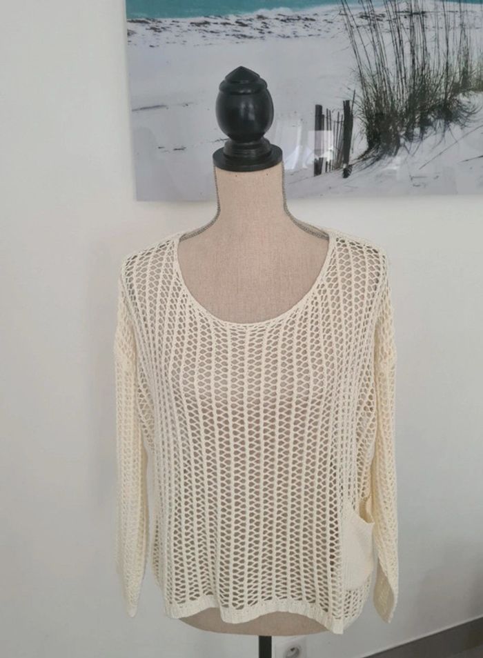 Pull ajouré à trou-trou Joli décolleté dans le dos Écru Taille S Très bon état (porté une seule fois) #virginie2220femme38 #virginie2220femme40