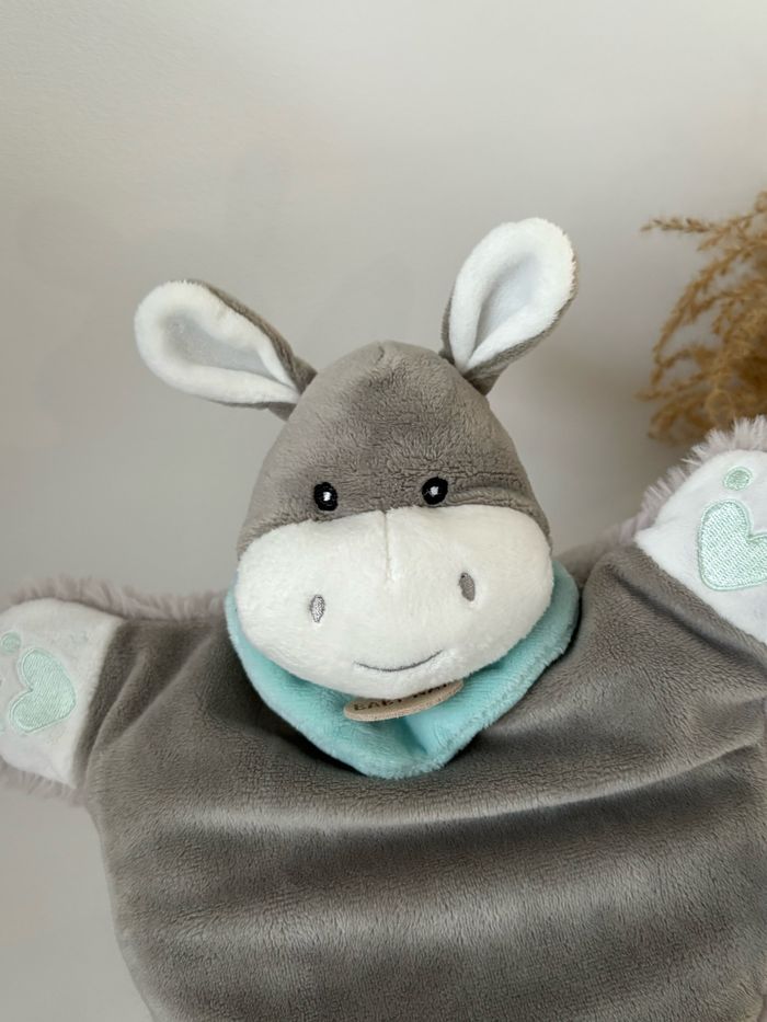 Doudou Marionnette âne ferme gris turquoise - photo numéro 1